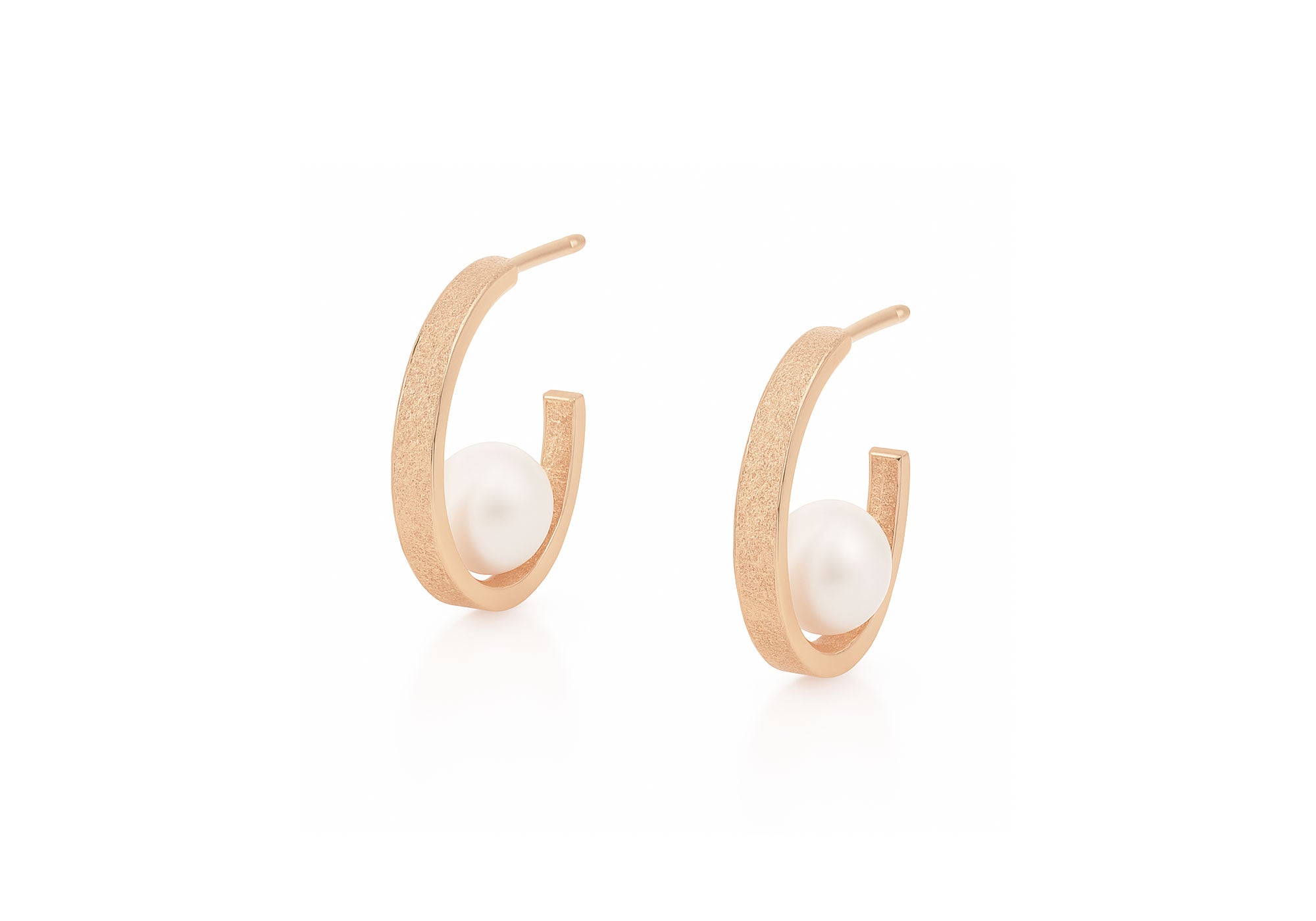 - Boucles d'oreilles style anneau en or de 15mm avec perle d'eau douce.