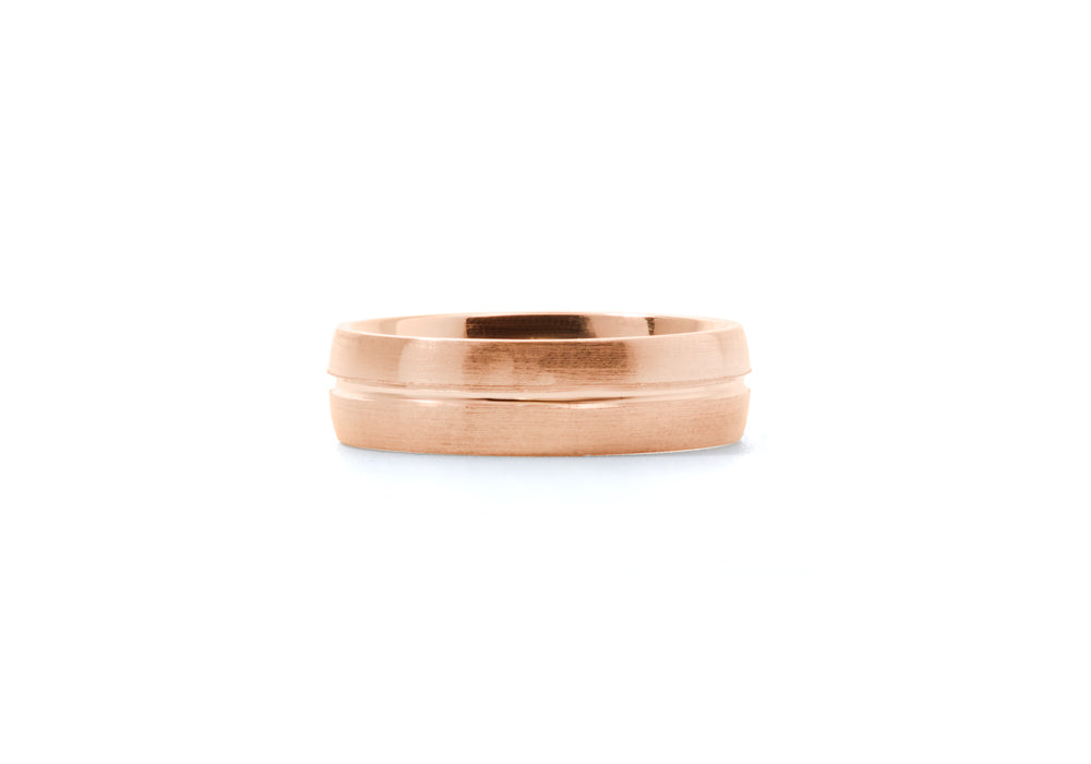 - Jonc en or brossé pour homme avec petite ligne lisse centrée.