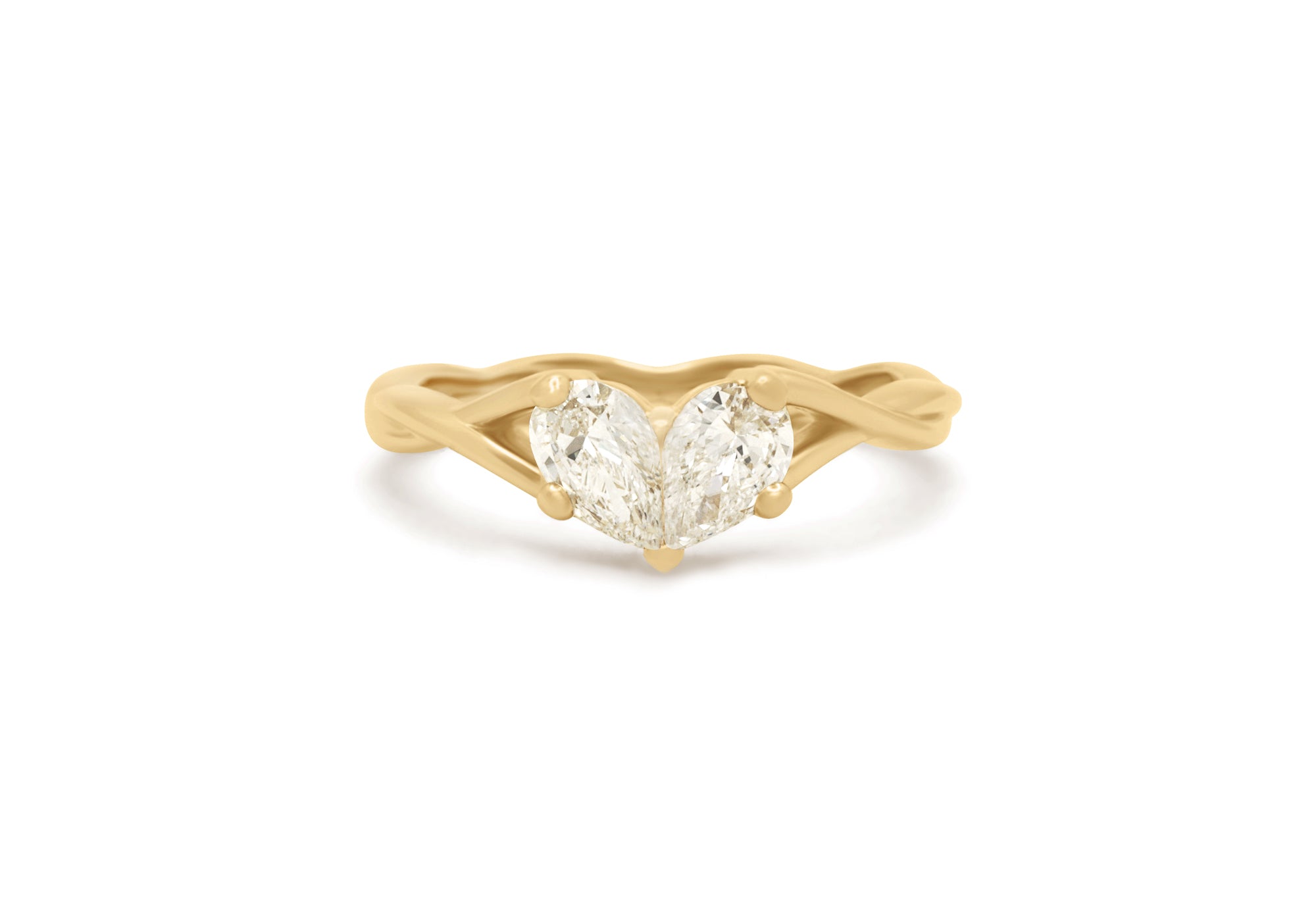 • Bague de fiançailles avec deux diamants poire formant un coeur.
