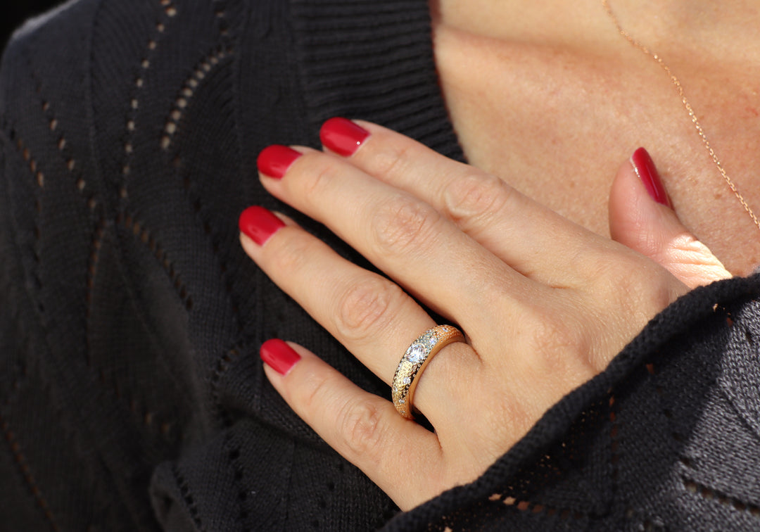 - Surface de la bague avec petits trous rappelant un ciel étoilé.