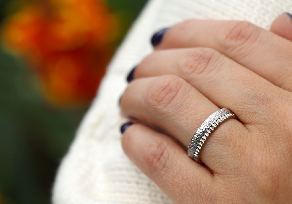 Nos bijoux sont fabriqués à la main en respectant les normes de protection de l’environnement. Nous utilisons des métaux recyclés, des pierres créées en laboratoire et des diamants canadiens pour la conception de tous nos bijoux.
