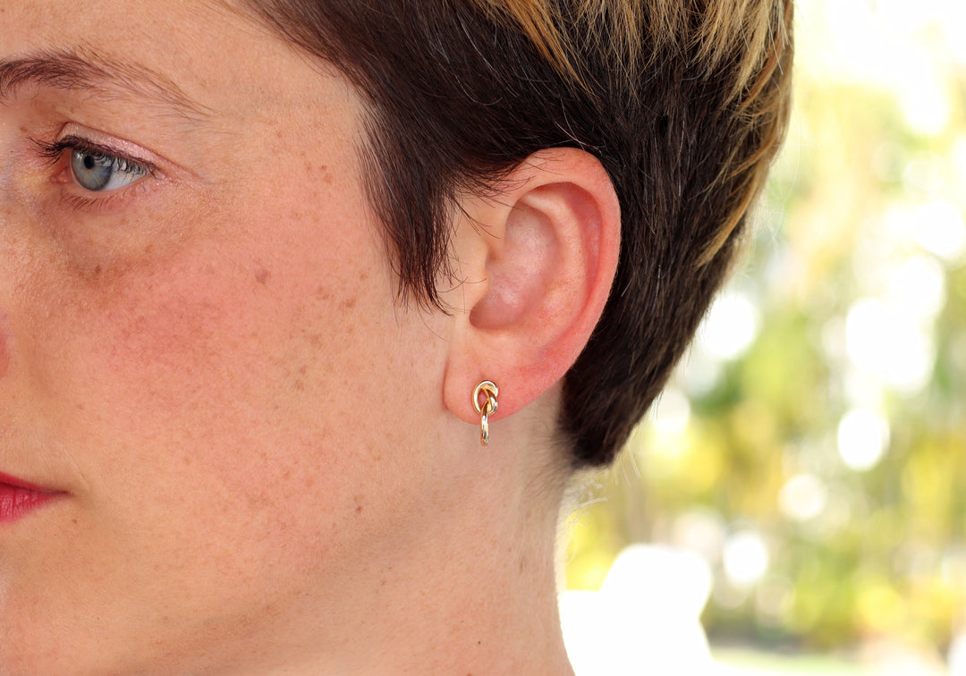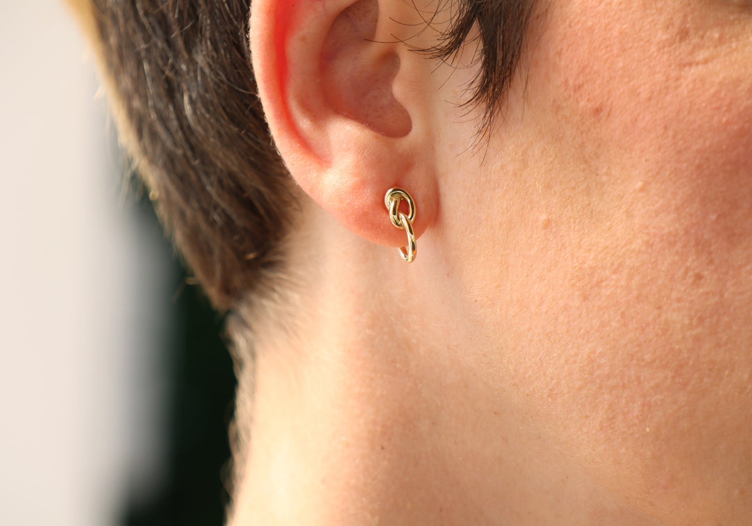 - Fil d'or noué à l'oreille avec fermoir papillon.