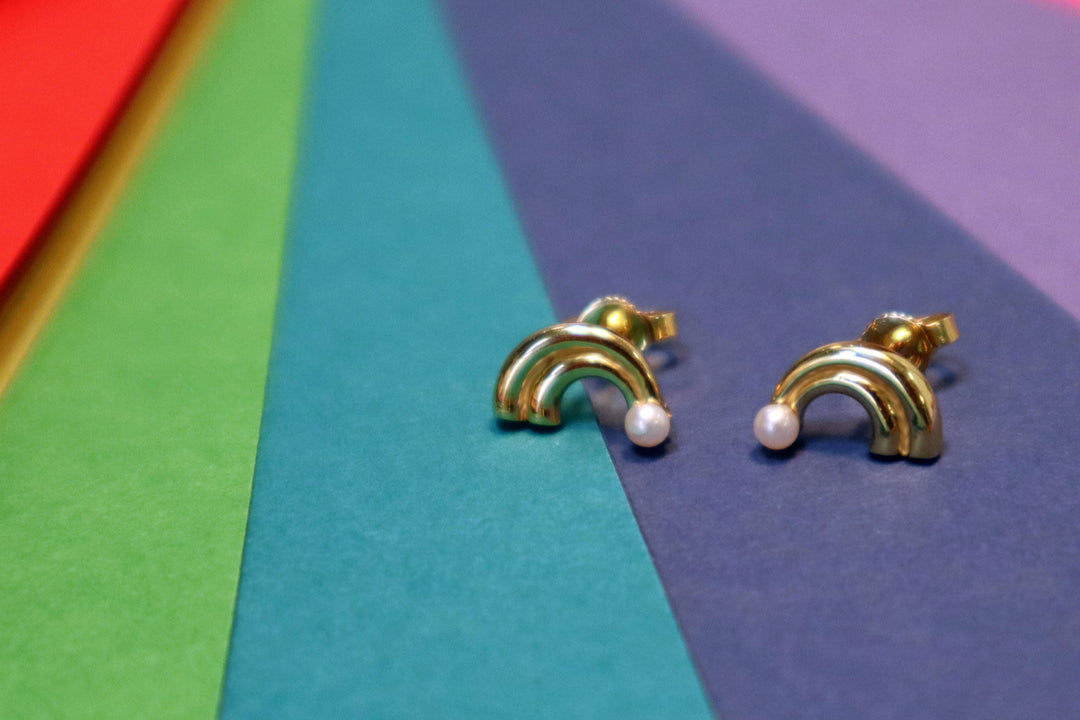 Mini boucles d'oreilles Arc-en-ciel et perles