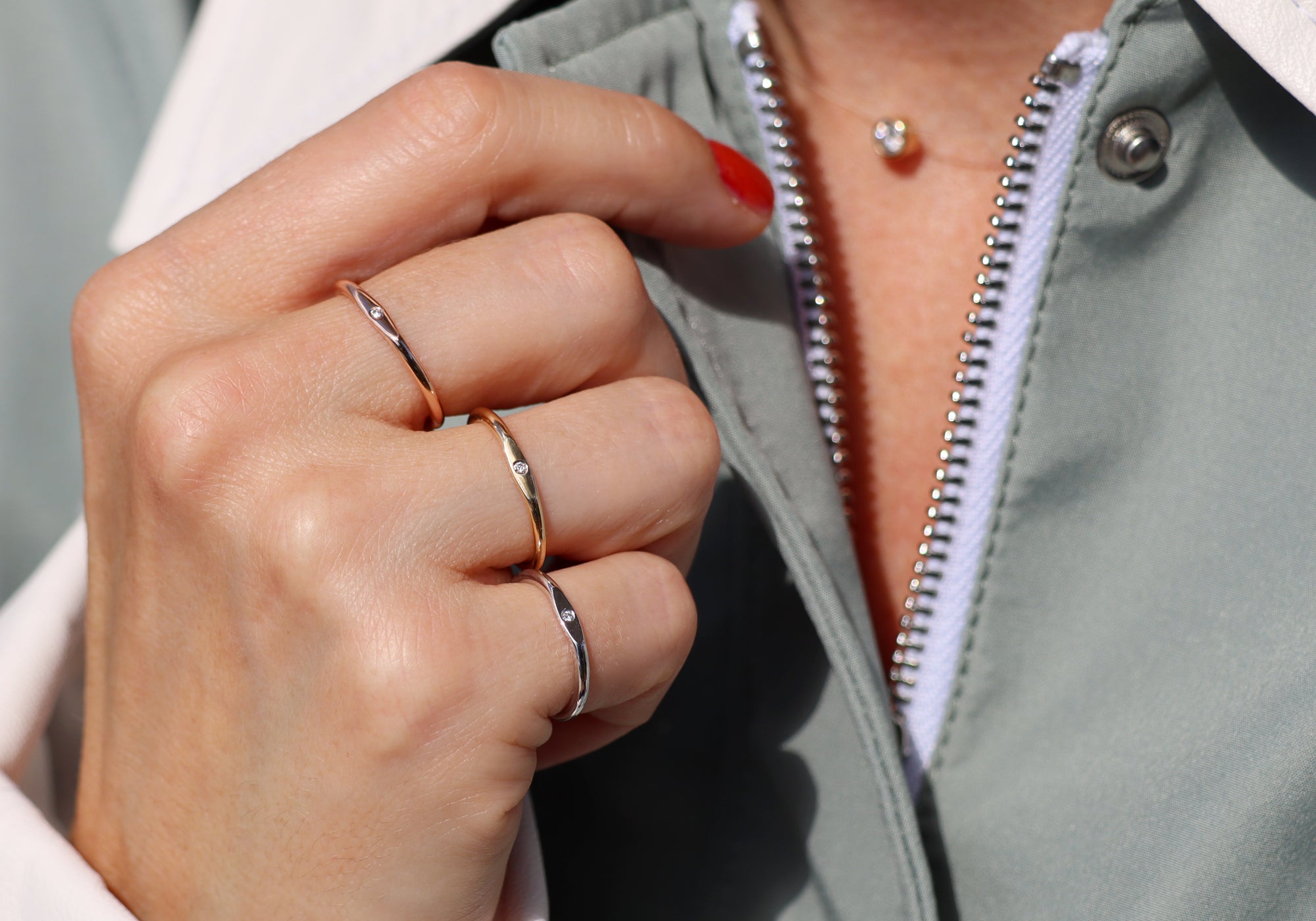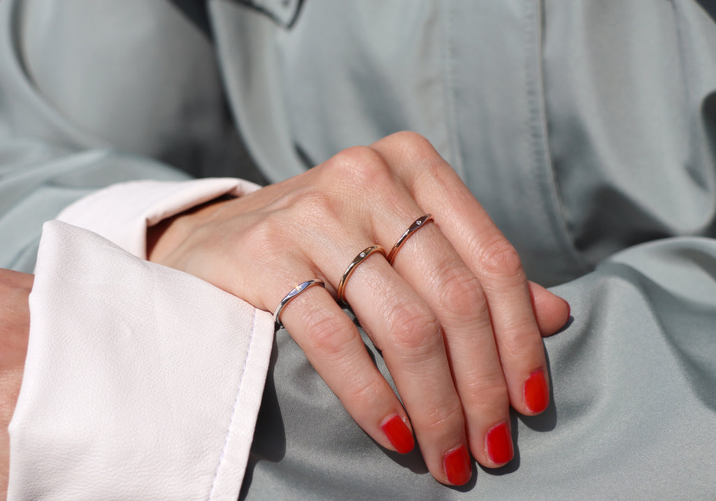 Nos bijoux sont fabriqués à la main en respectant les normes de protection de l’environnement. Nous utilisons des métaux recyclés, des pierres créées en laboratoire et des diamants canadiens pour la conception de tous nos bijoux.