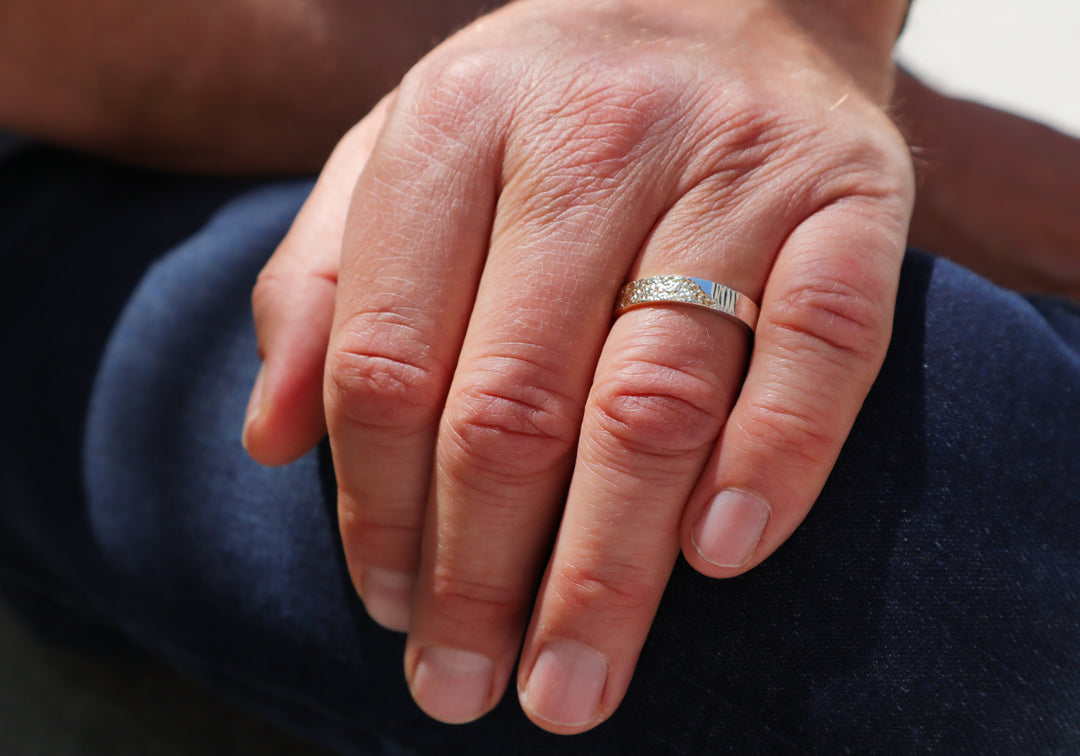 • Un jonc pour homme alliant surface texturée et surface polie.