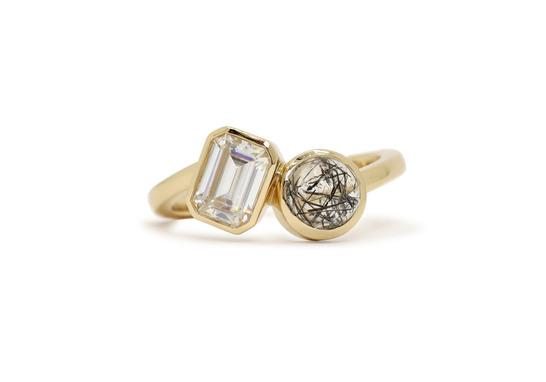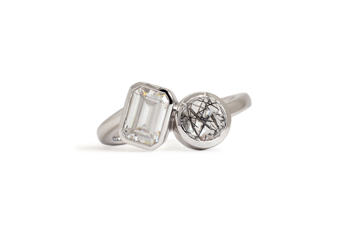 - Les deux pierres sont la moissanite et le quartz rutilé.