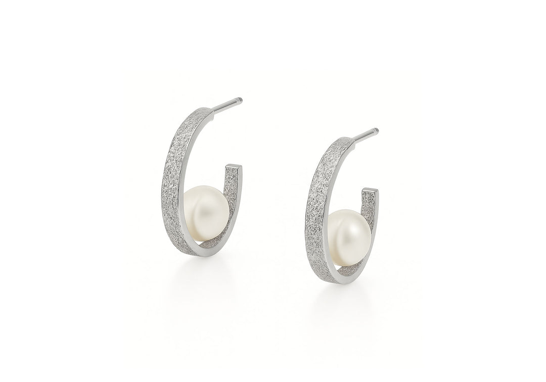 - Boucles d'oreilles style anneau de 15mm avec perle d'eau douce.