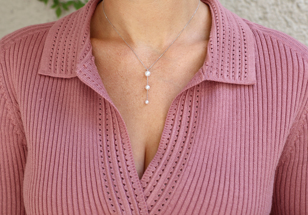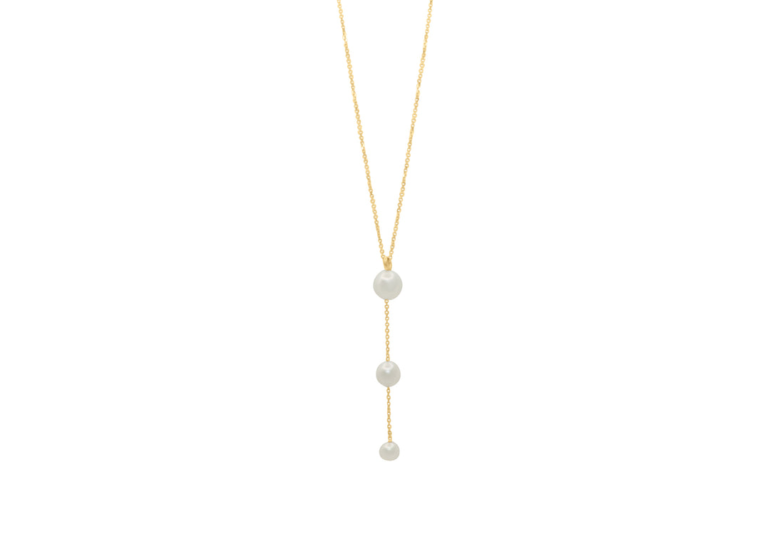 - Pendentif avec 3 perles blanches qui s'alignent sur une fine chaîne en or.