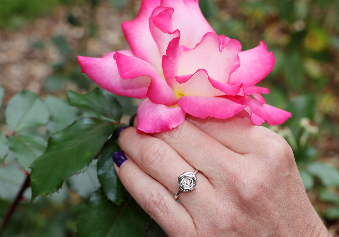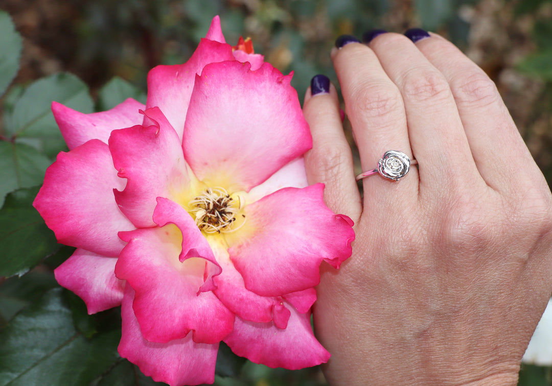 Bague pour femme en or avec une fleur de rose.