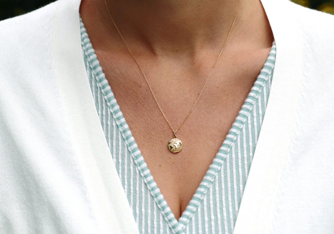 - Carte du monde sculptée sur un médaillon en or.