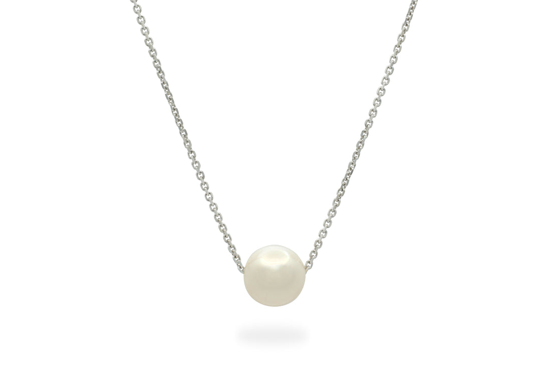 Pendentif avec chaîne en or et perle d'eau douce percée.