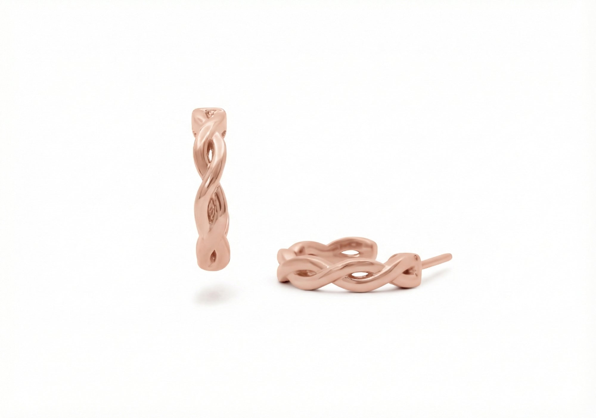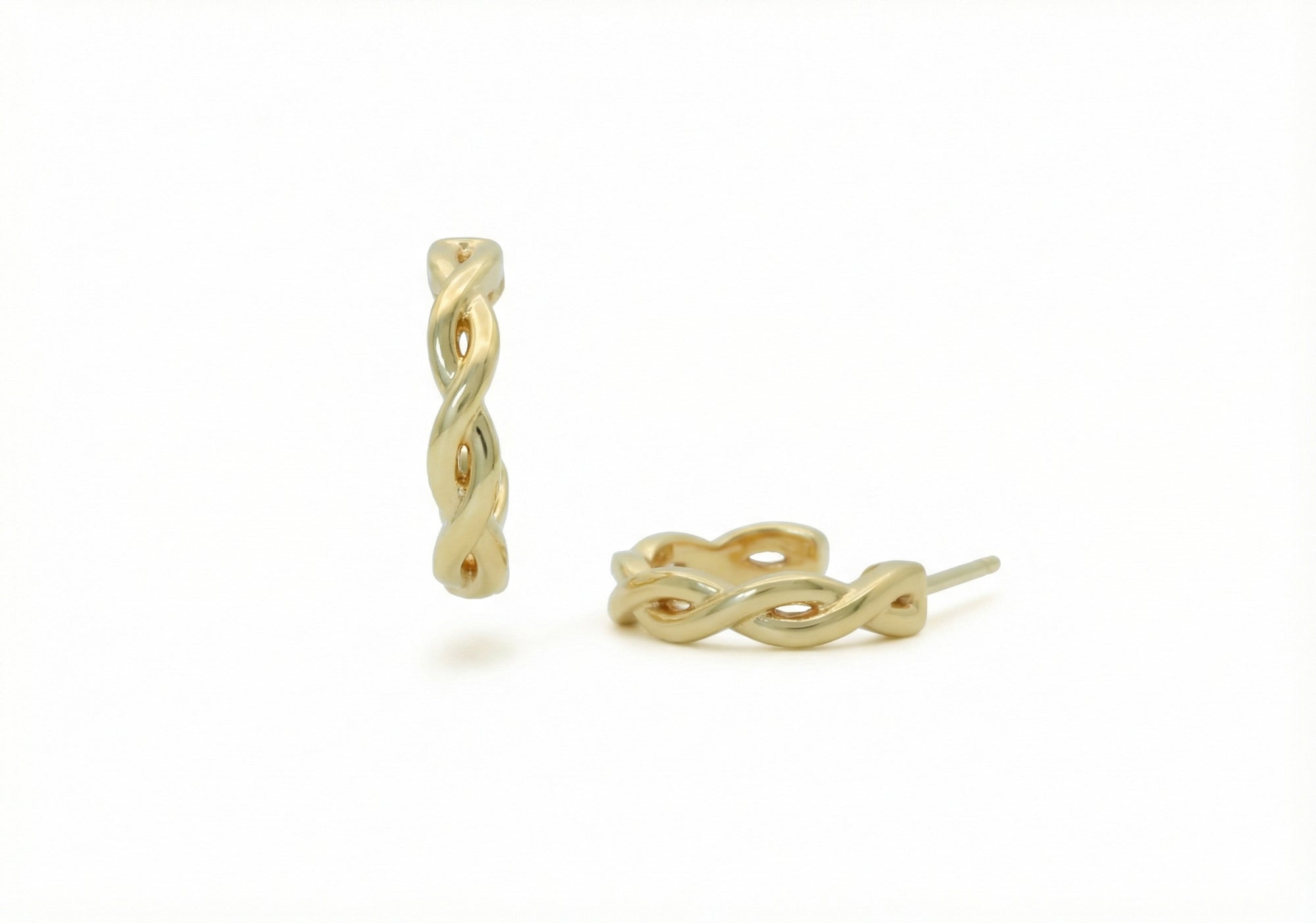 - Boucles d'oreilles au corps croisé rappelant le signe de l'infini en or recyclé.