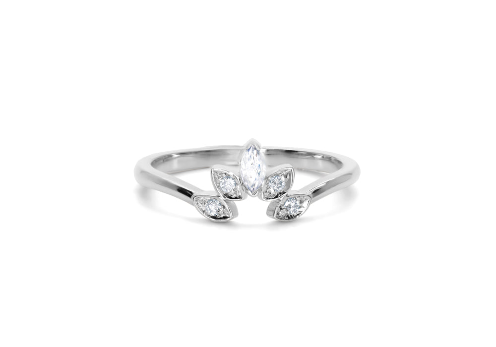 - Au centre, une pierre marquise au sommet de 4 diamants ronds.