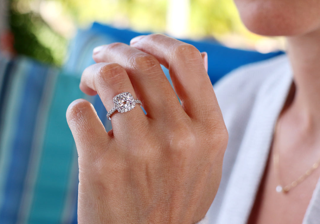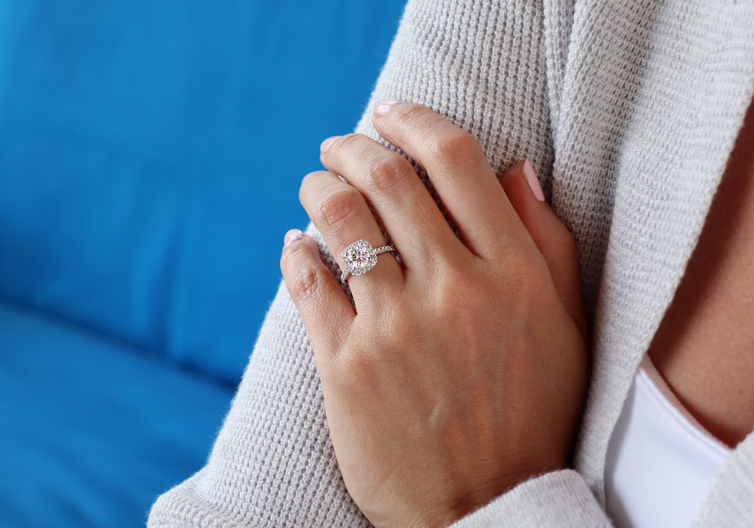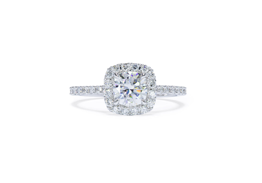 • Halo de 16 diamants autour d'un diamant rond de 75 points.