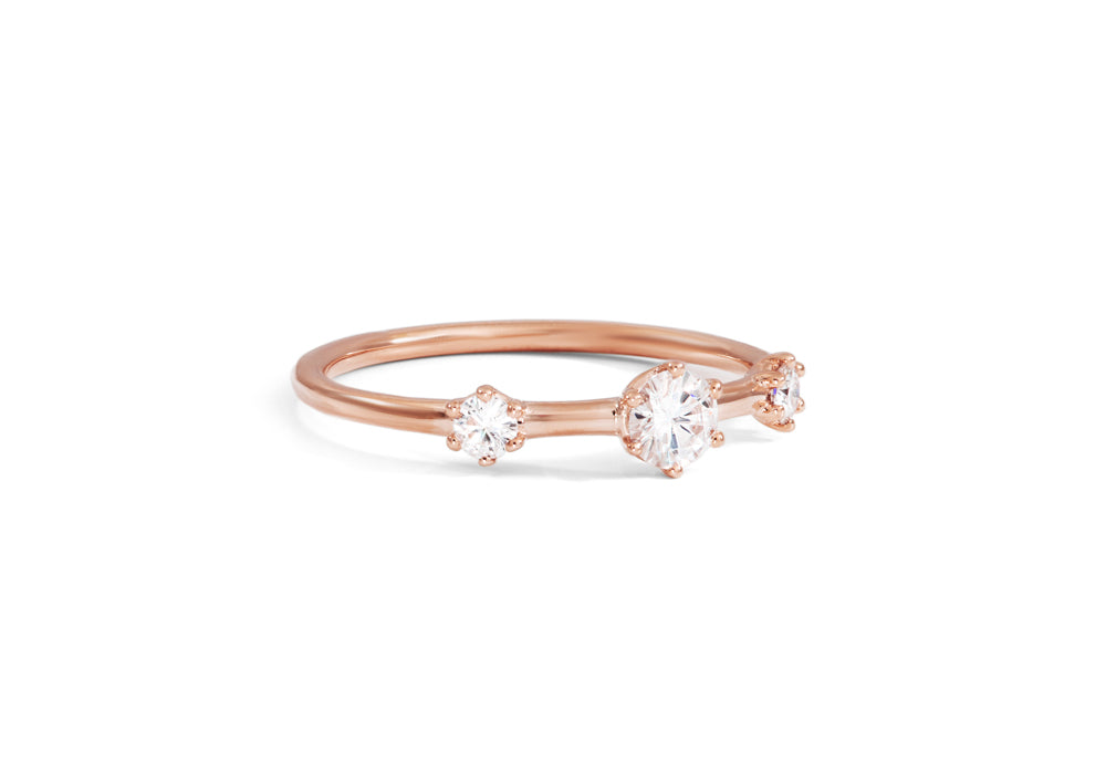 - Bague de fiançailles à 3 diamants montés sur griffes.