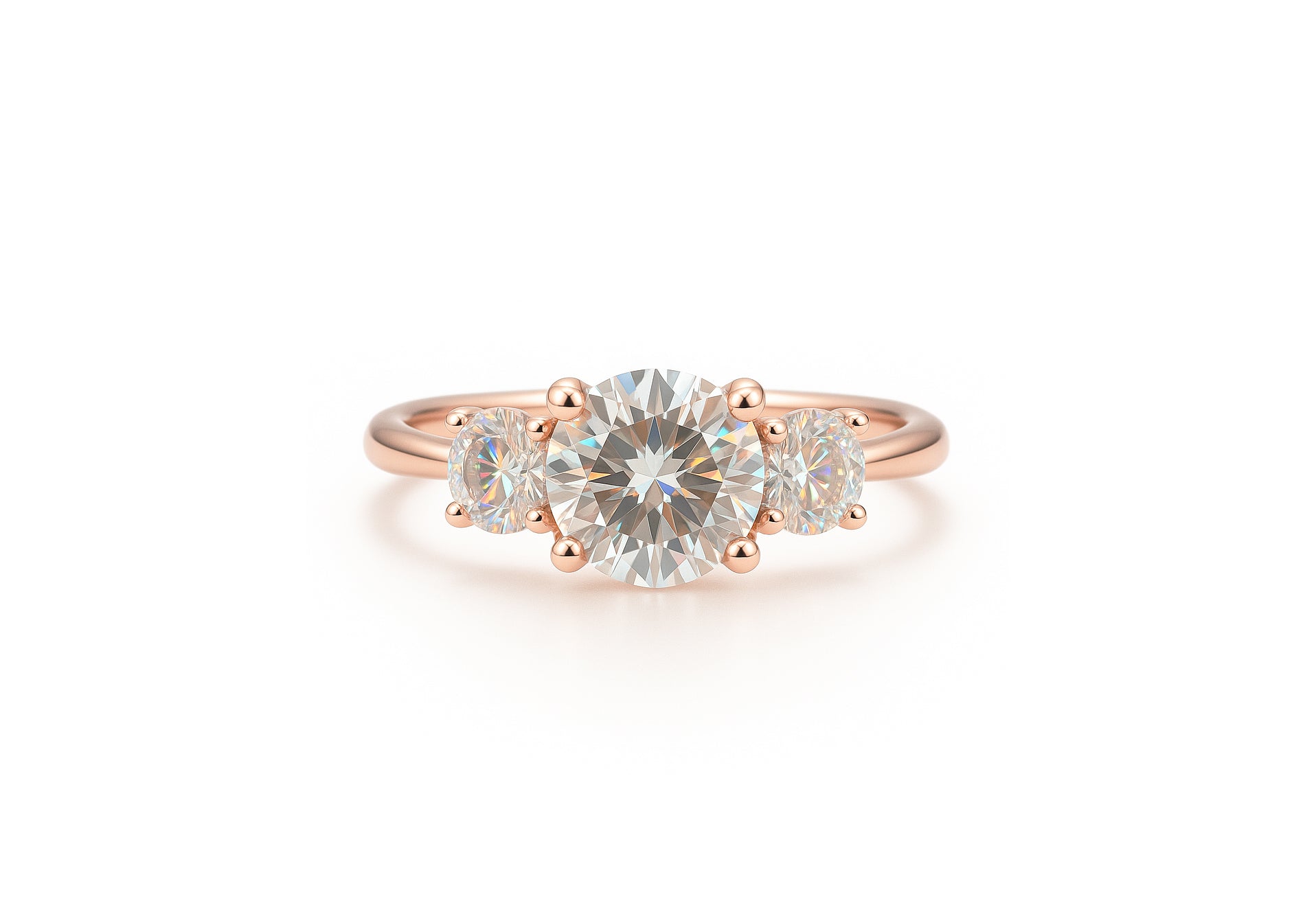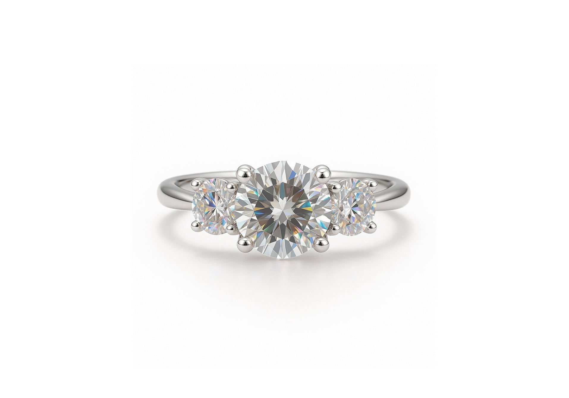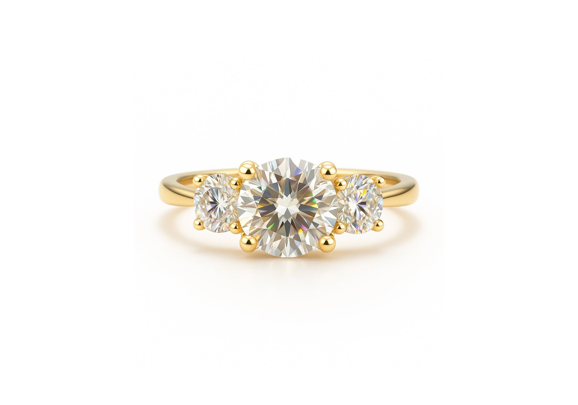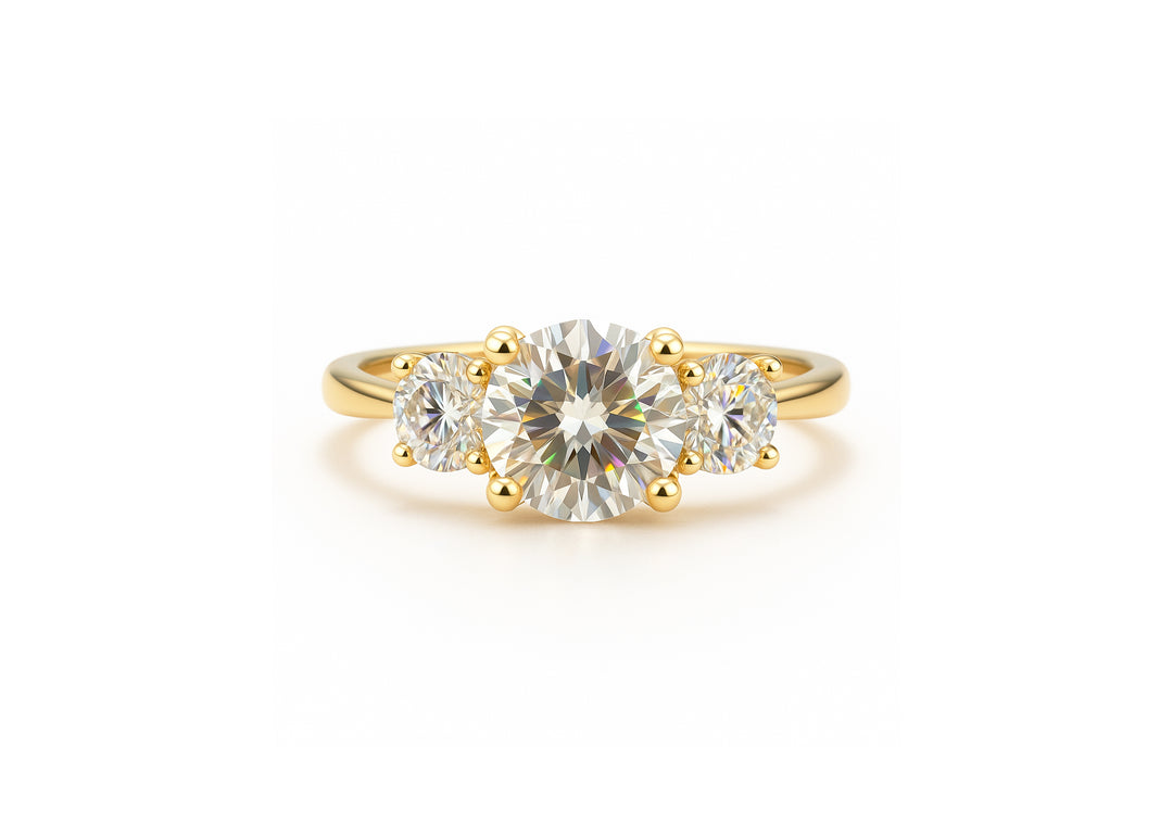 • Bague de fiançailles en or avec trois diamants pour un total de 1.35 carats.