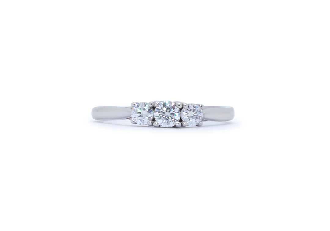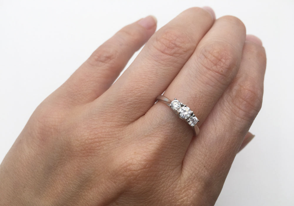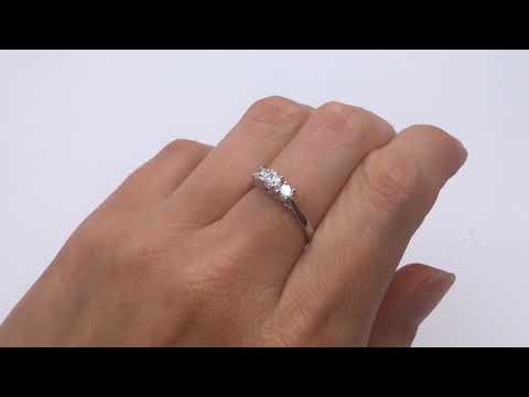 • Bague de fiançailles en or avec trois diamants rapprochés.