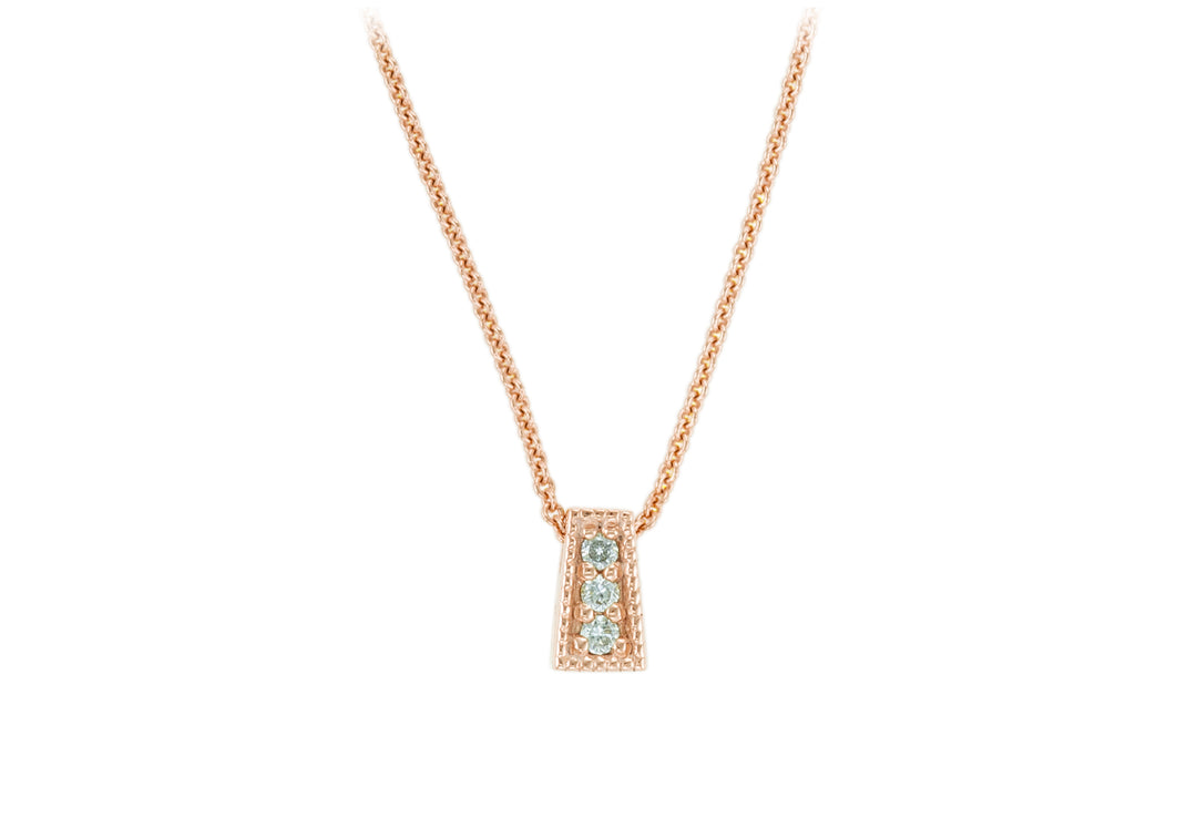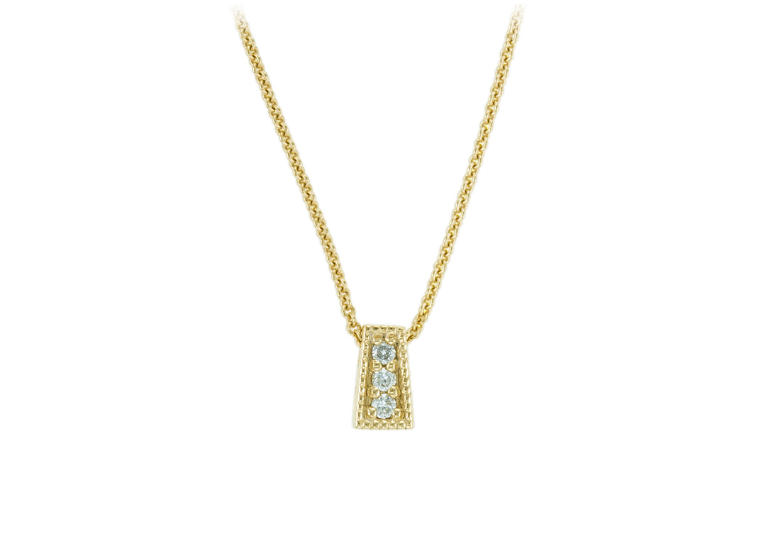 - Pendentif en or de forme trapèze avec trois petits diamants.