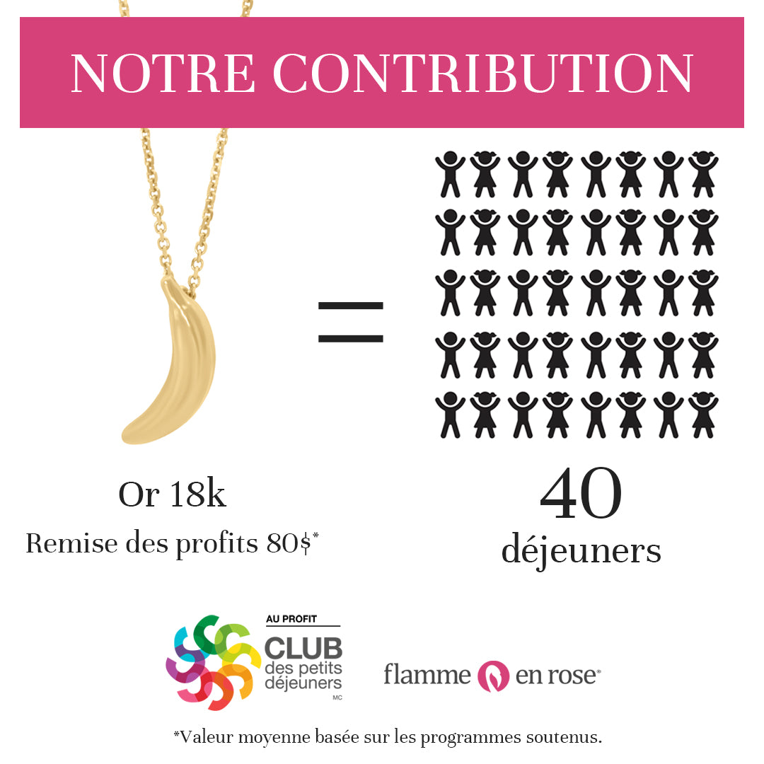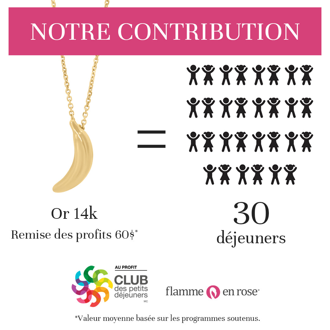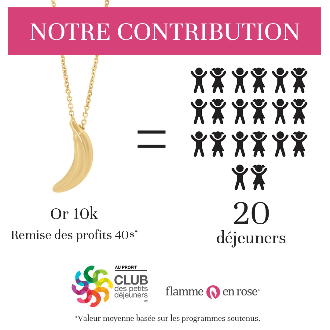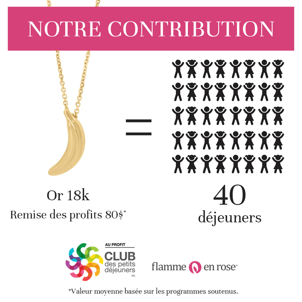 - Avec chaque pendentif vendu, vous contribuez à offrir des petits déjeuners aux enfants, grâce à notre partenariat avec le Club des petits déjeuners.