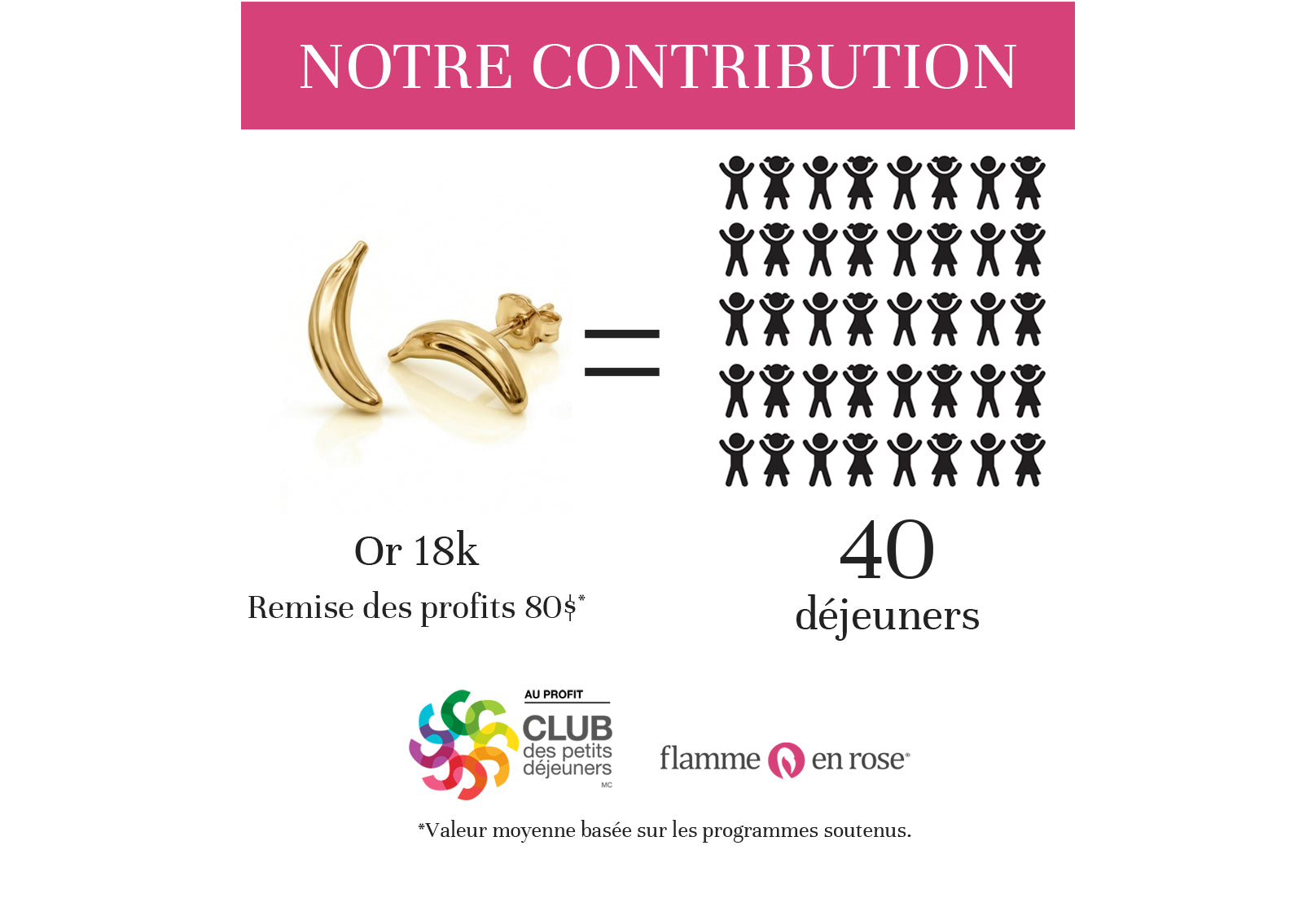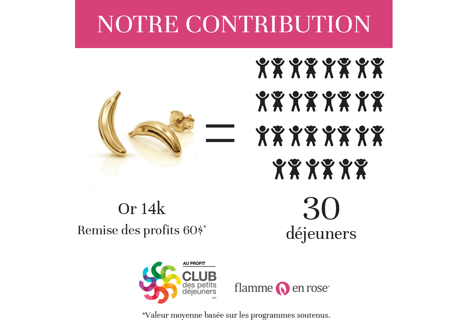 - Avec chaque bijou vendu, vous contribuez à offrir des petits déjeuners aux enfants, grâce à notre partenariat avec le Club des petits déjeuners.