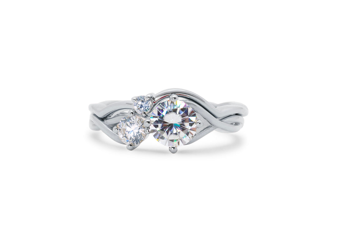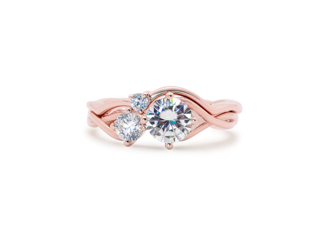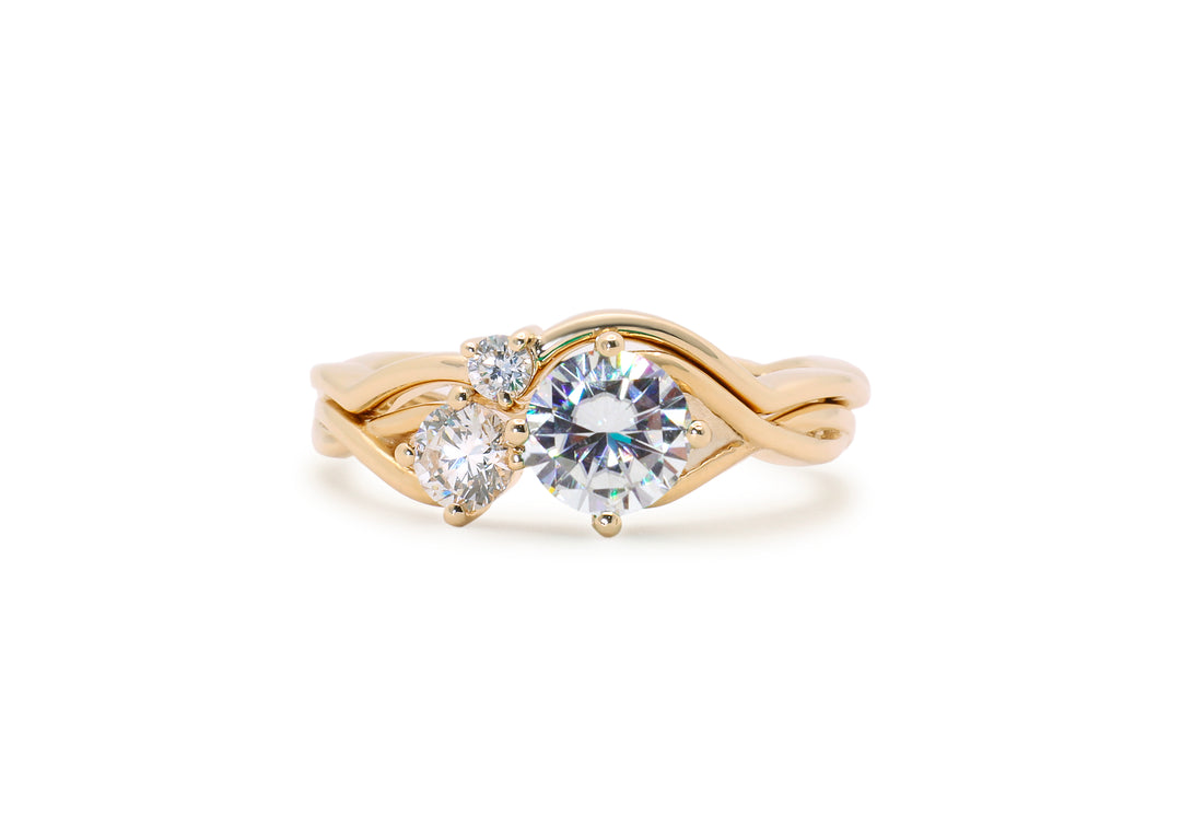 - L'alliance suit parfaitement les courbes de la bague de fiançailles.