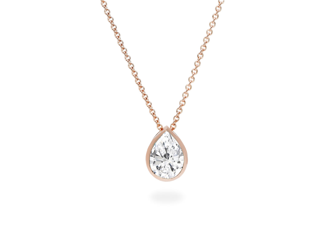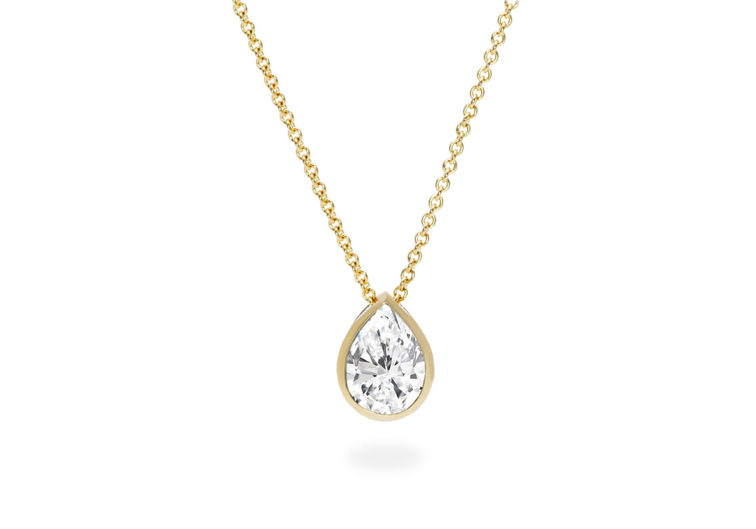 - Un diamant en serti clos à l'intérieur de la goutte.
