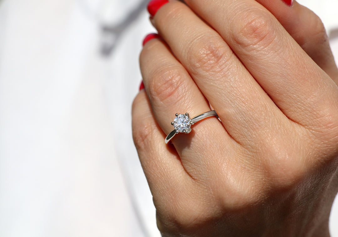 - Bague de fiançailles classique en argent sterling avec moissanite.