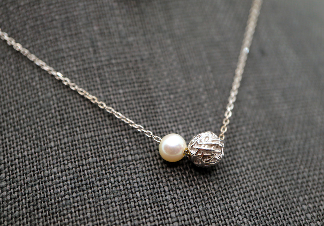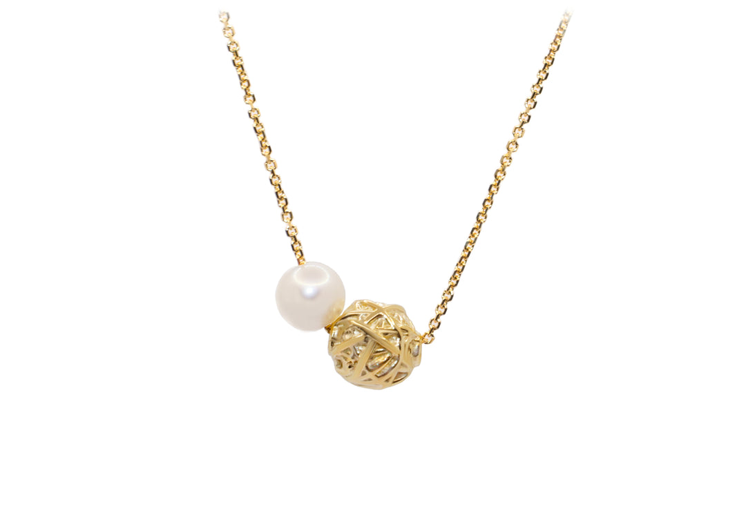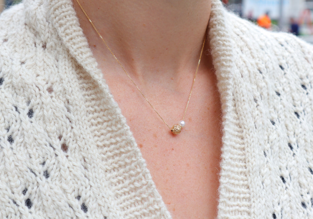 • Pendentif balle de laine en or recyclé avec perle d'eau douce naturelle.