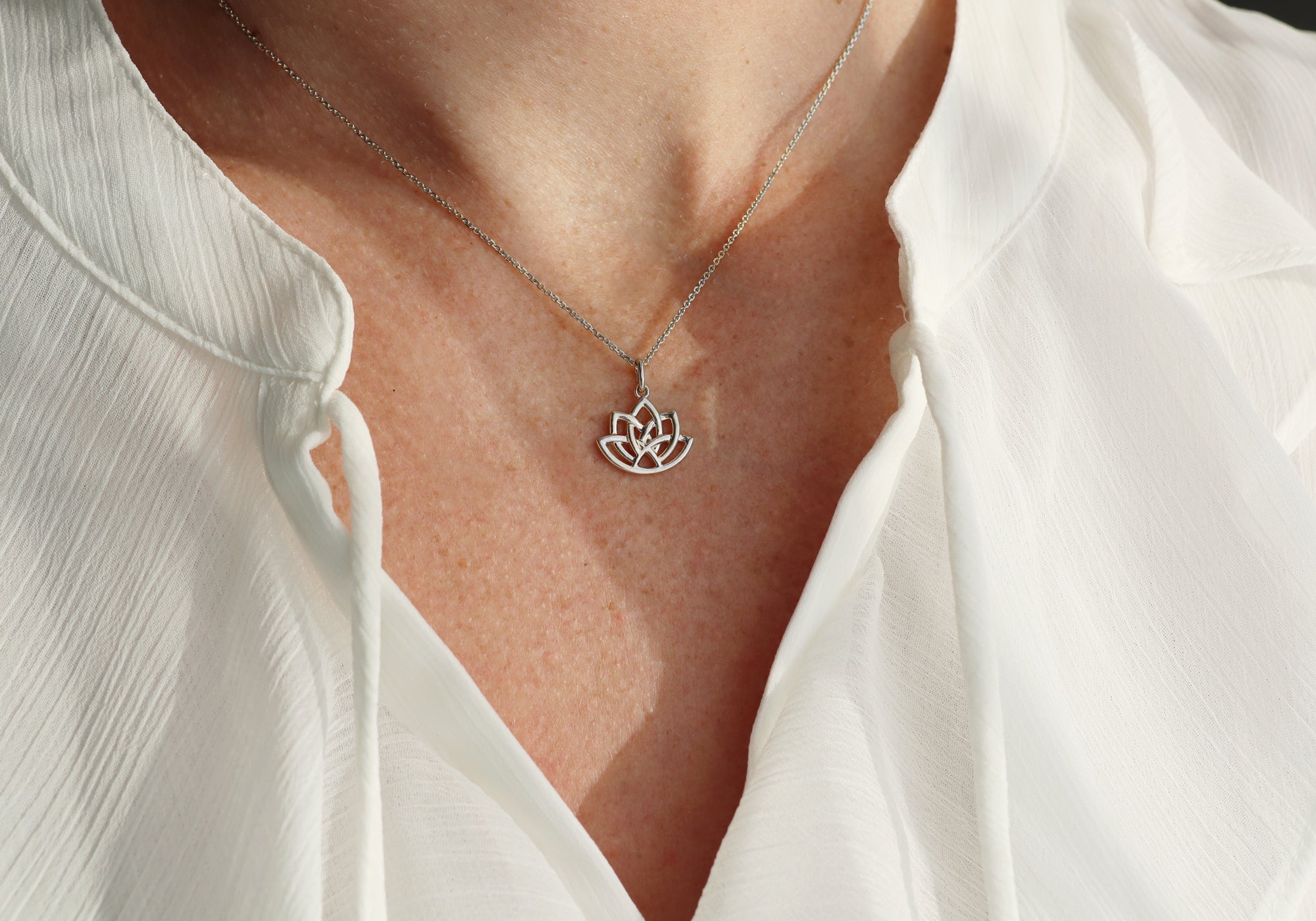 - Pendentif en argent sterling reprenant la forme de la fleur de lotus.