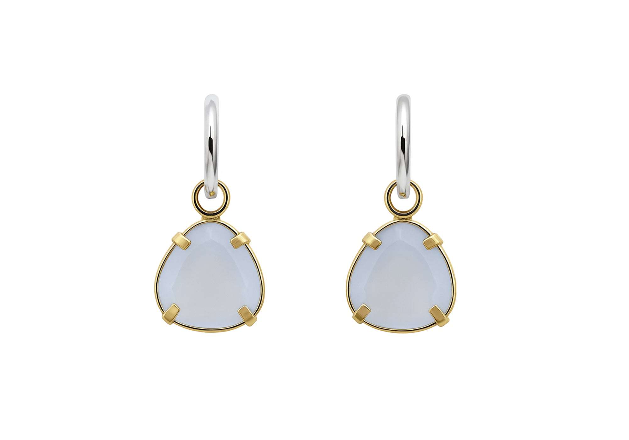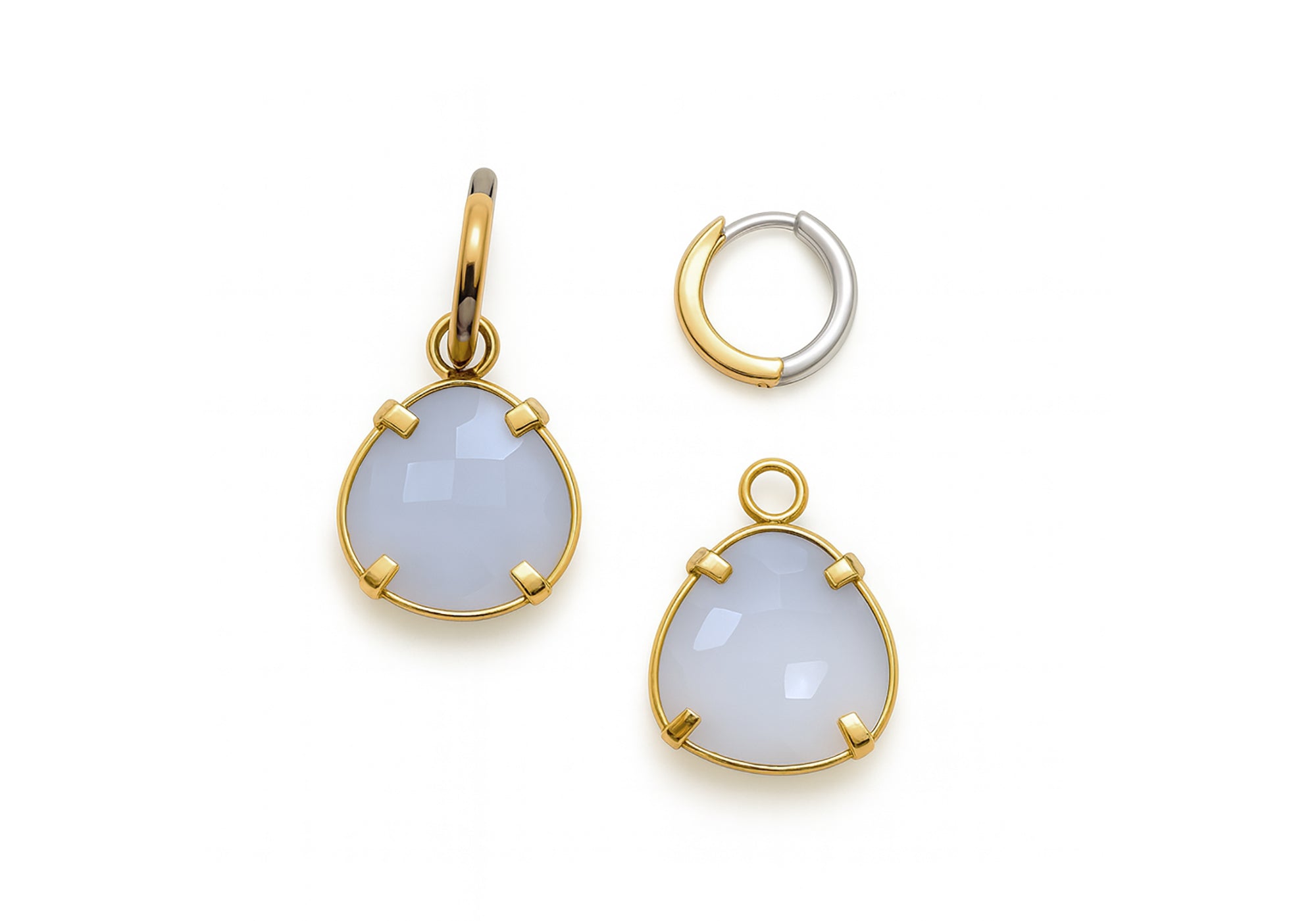 - Boucles d'oreilles anneaux 2 tons avec enjoliveurs de pierres de calcédoine.