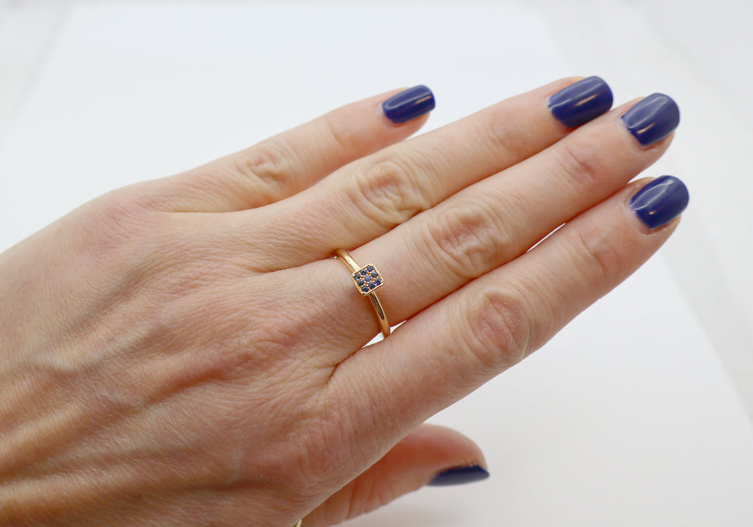 - Tête de bague carrée avec pavé de saphirs bleus naturels.