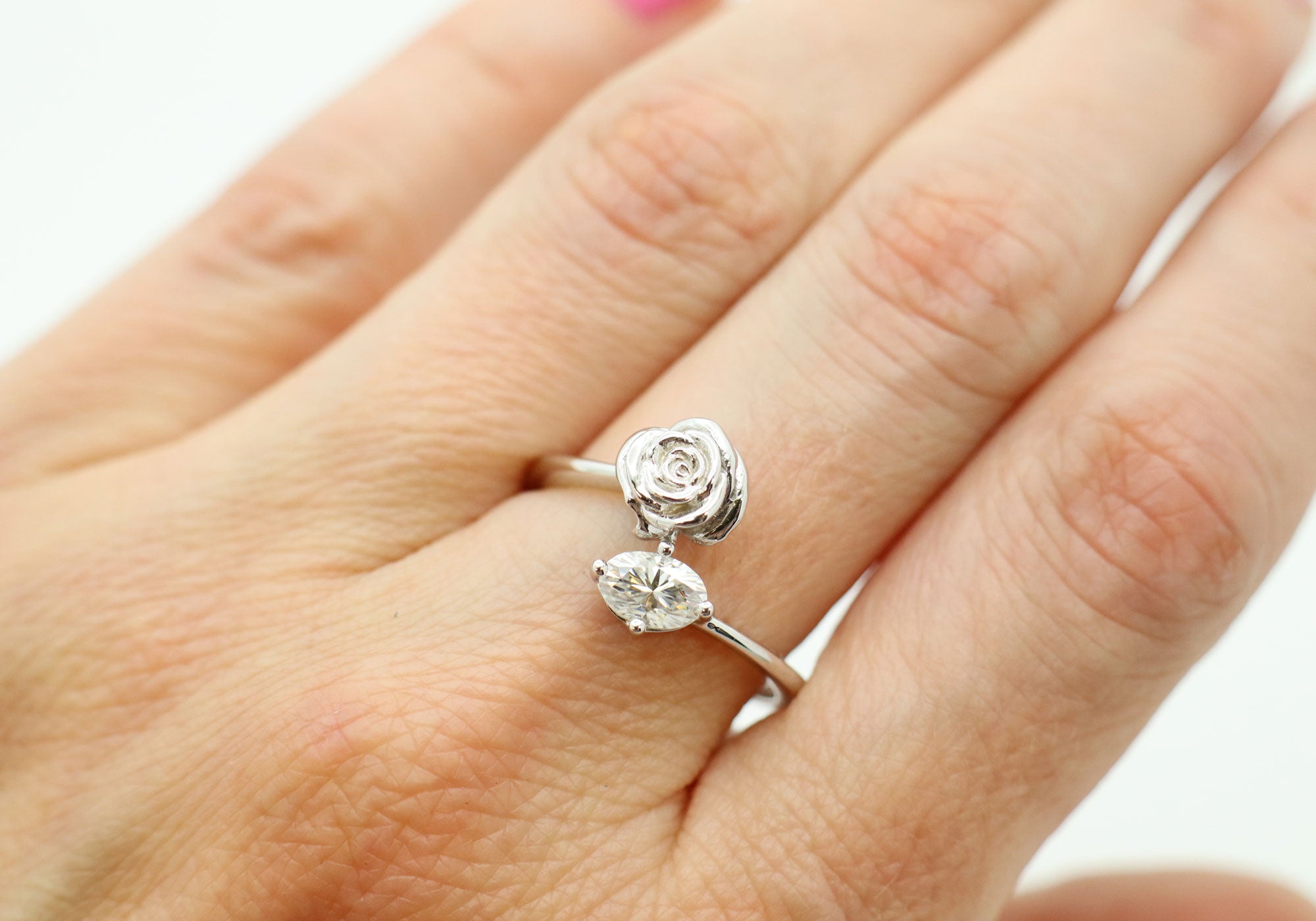 Bague croisée avec rose et moissanite