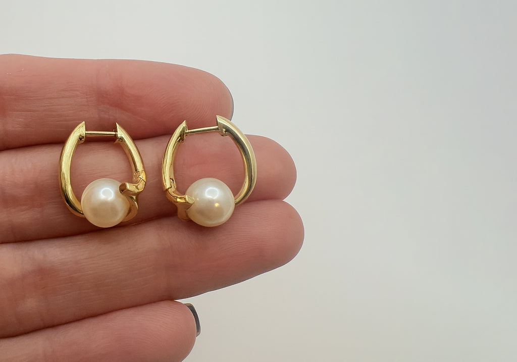 - Boucles d'oreilles or jaune 10K avec perles d'eau douce naturelles.