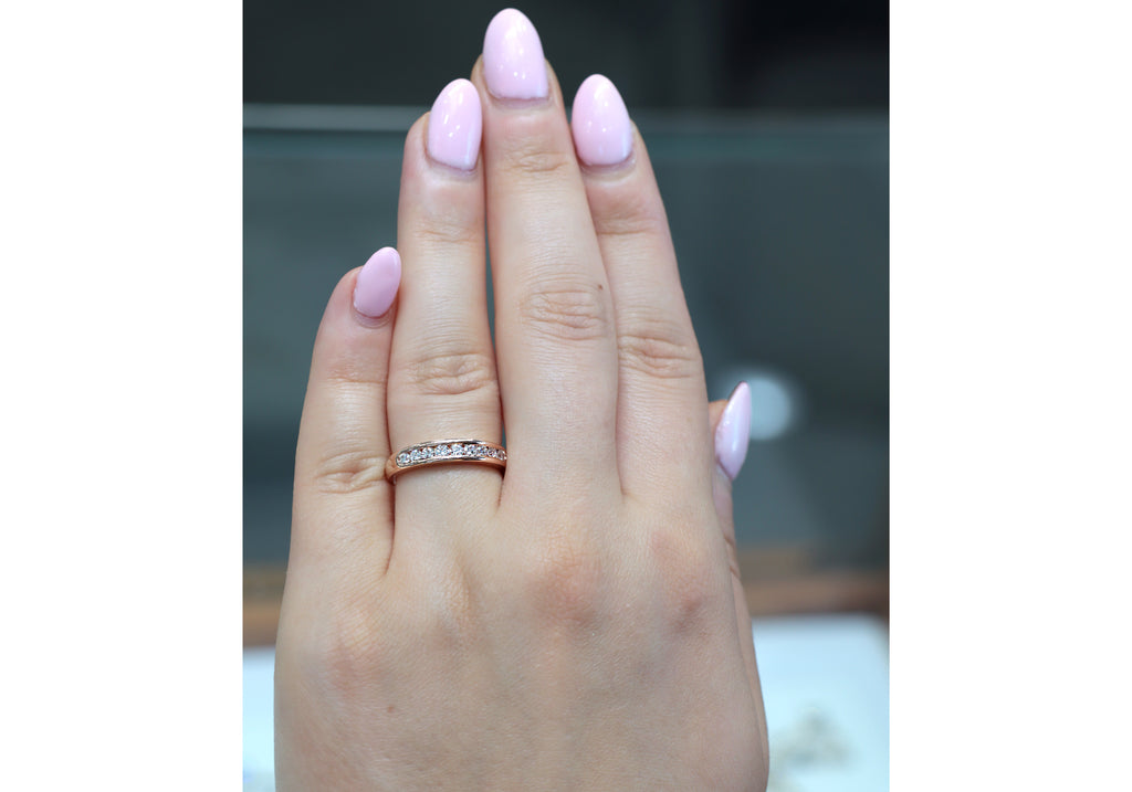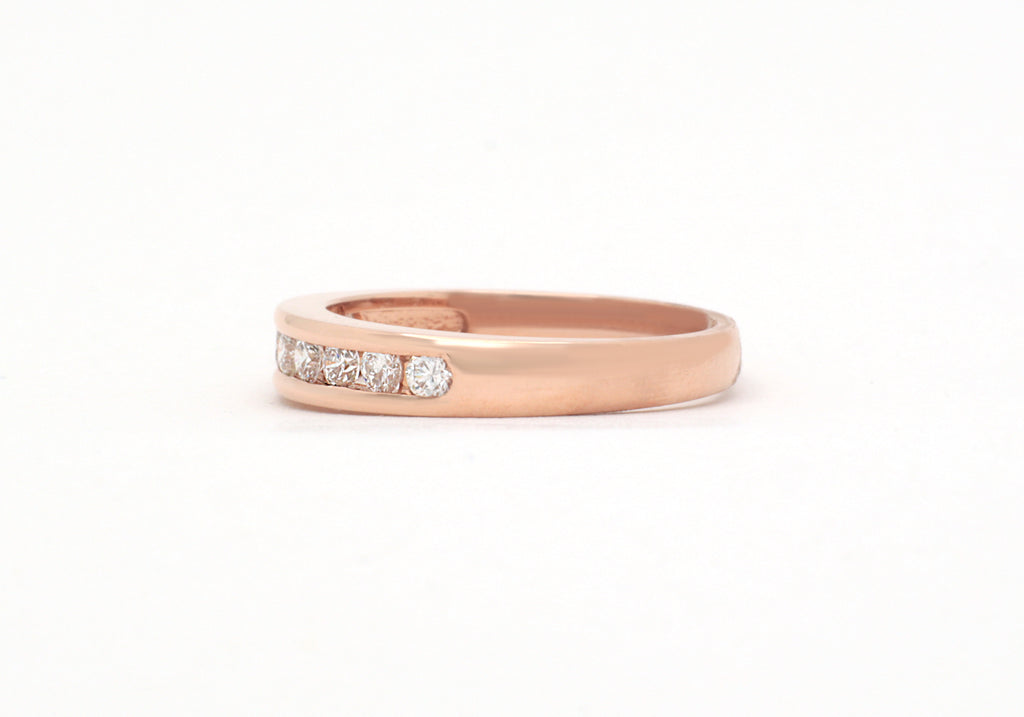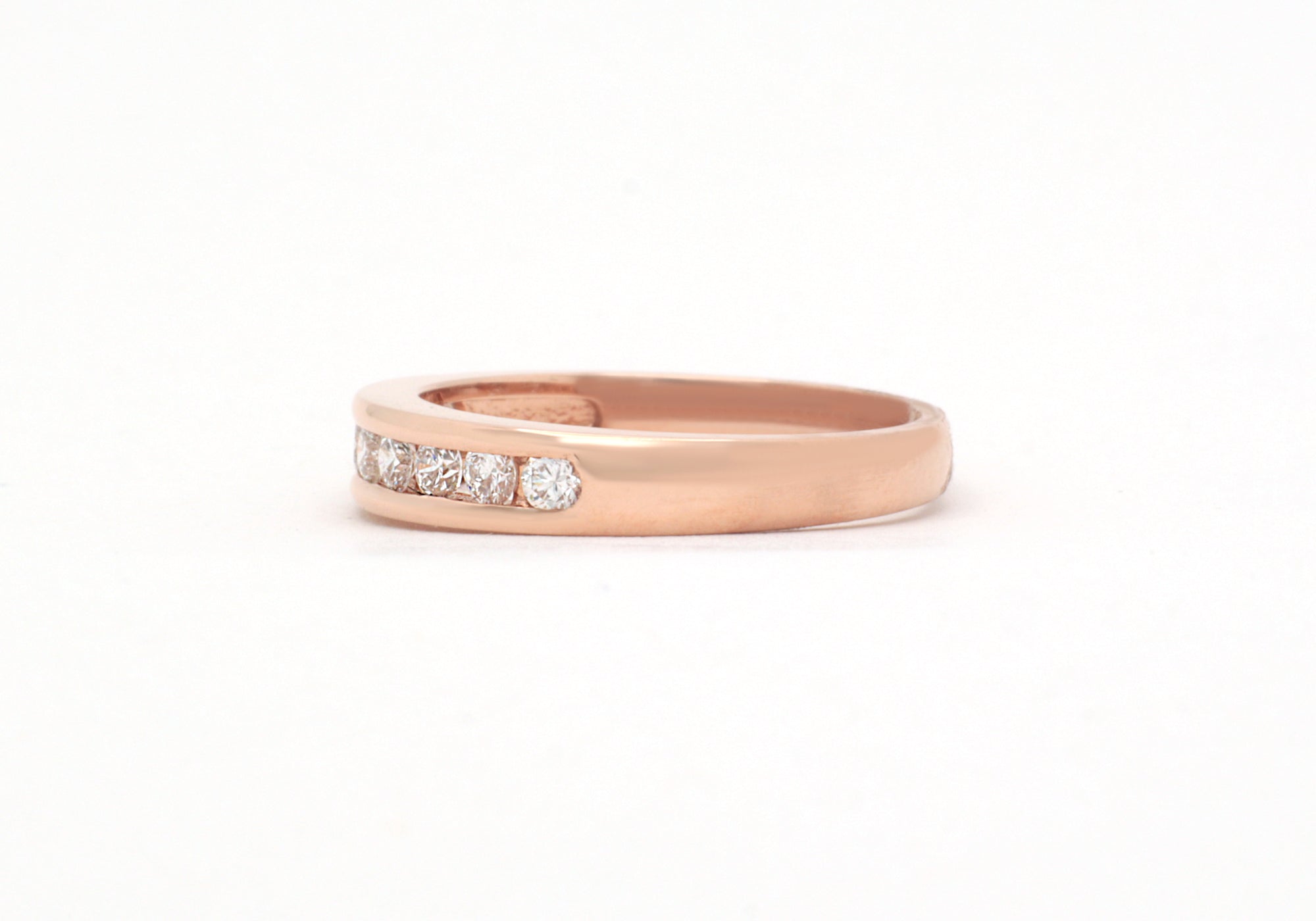 Jonc épuré en or rose et diamants sertis dans un serti de type chanel.