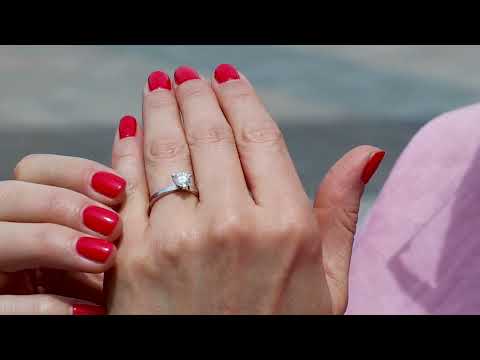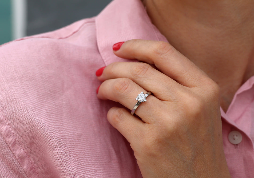 - Bague de fiançailles classique avec pierre centrale sertie sur 3 griffes.