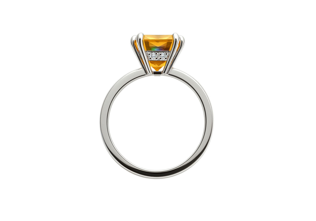 - Halo de diamants cachés sur la sertissure de la pierre centrale.
