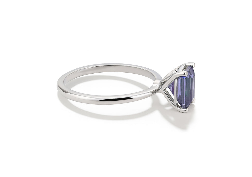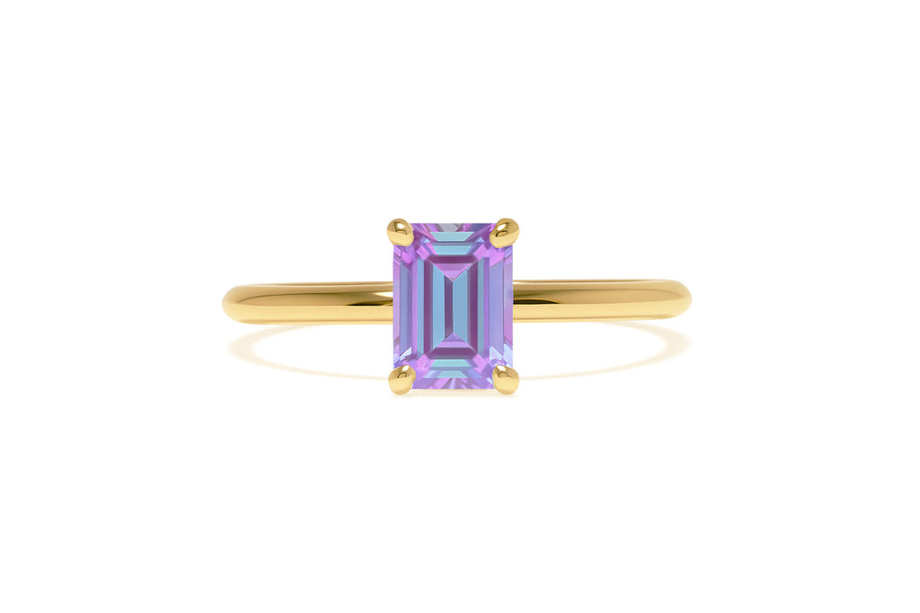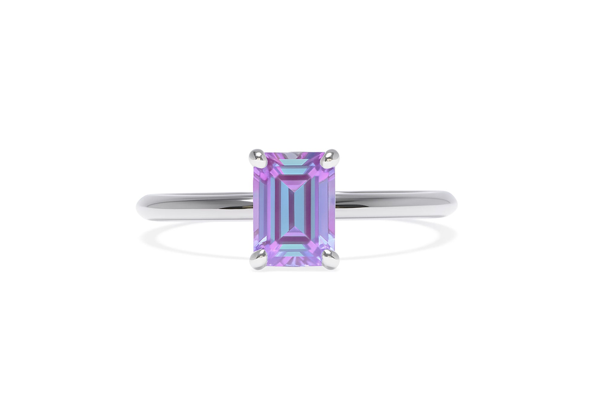 - Solitaire avec une alexandrite créée en laboratoire de taille émeraude.