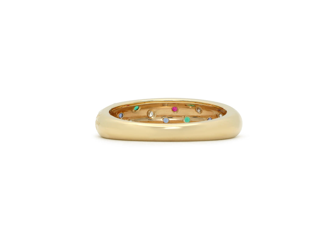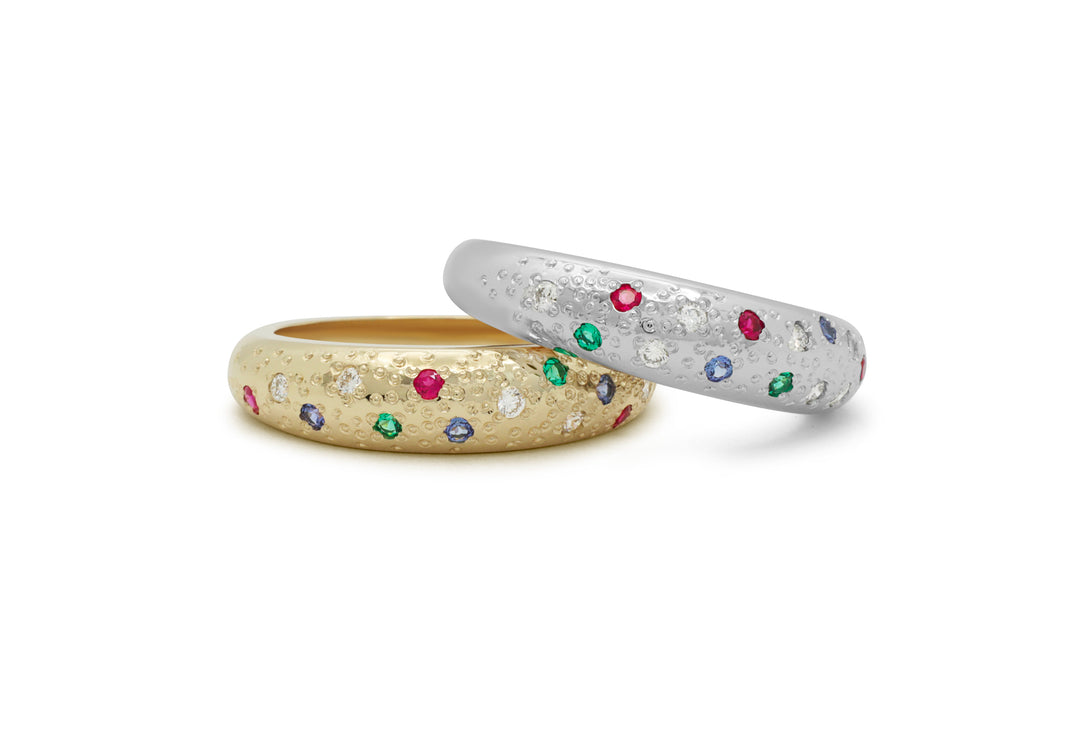 - Bague avec texture pointillée et 16 pierres précieuses.