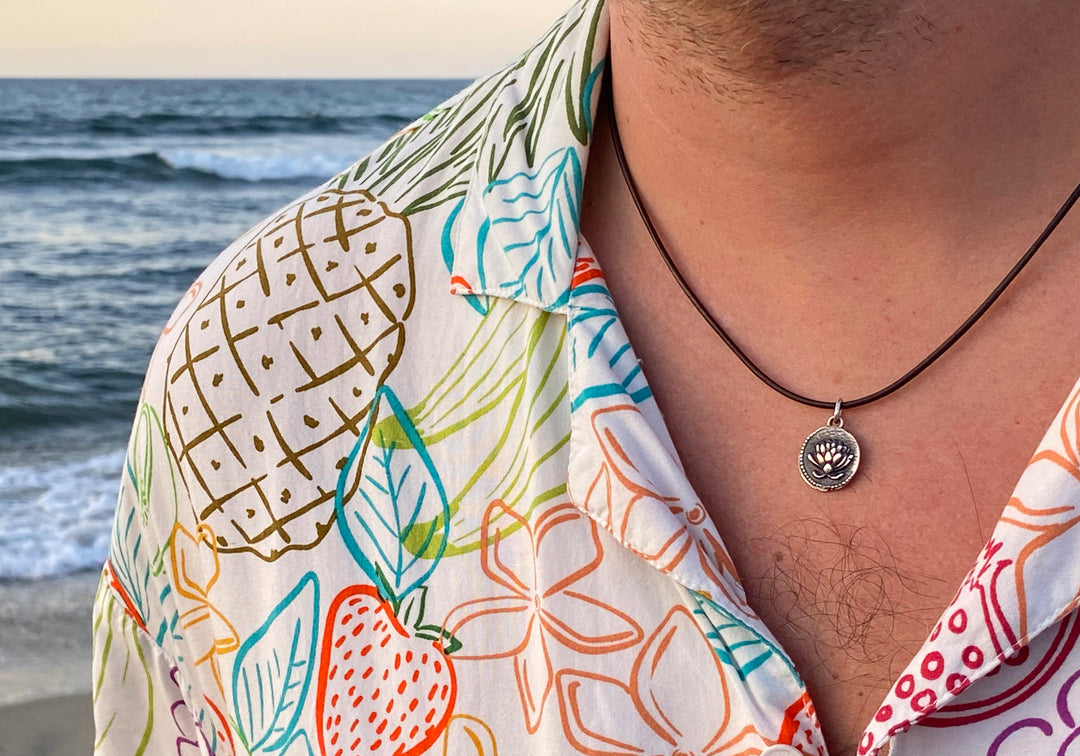 - Pendentif en argent sterling avec images symboliques tirées de la philosophie bouddhiste.
