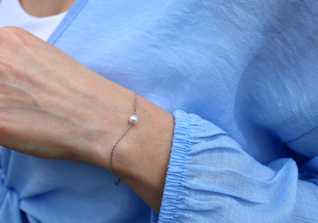 - Bracelet avec perle d'eau douce sur une chaîne en argent sterling.