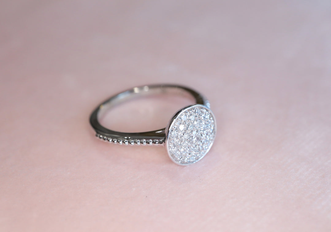 - Les mini boules sur le corps de bague apportent un côté vintage à la bague.
