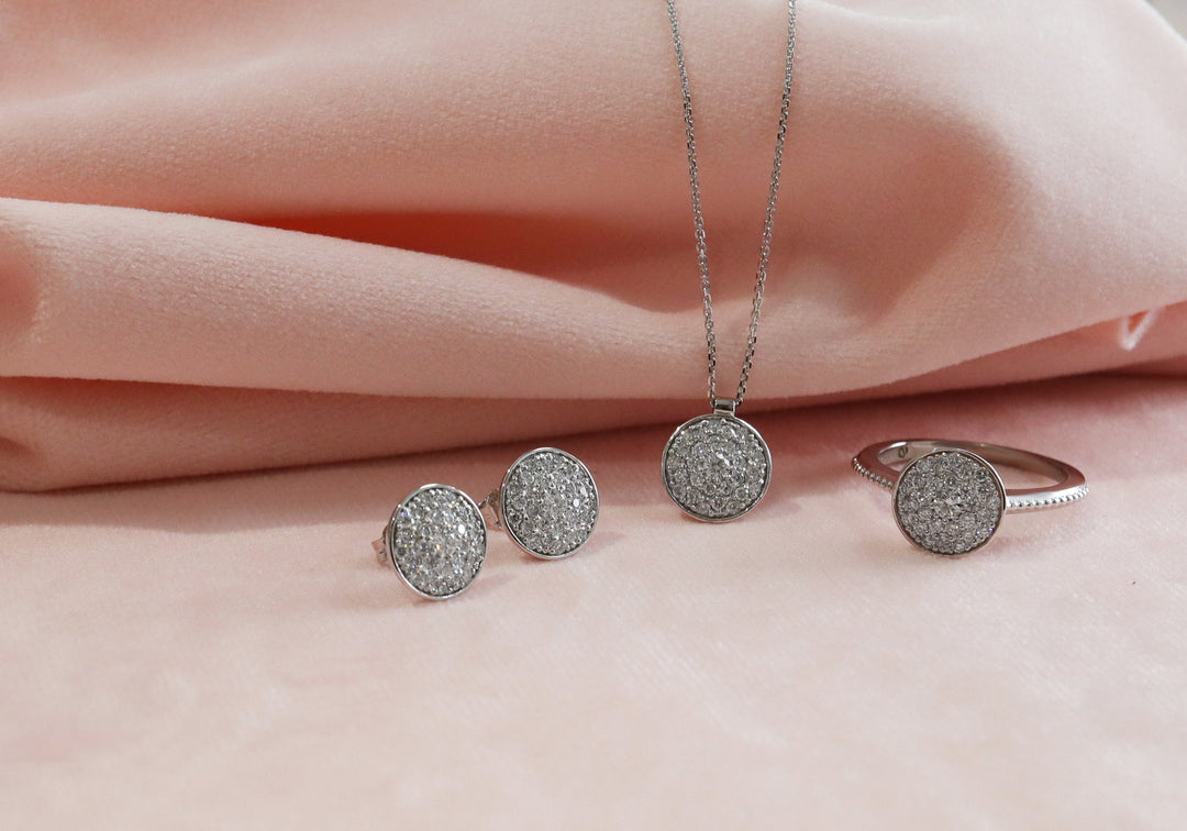 - Les boucles d'oreilles et le pendentif de la même collection sont également disponibles.
