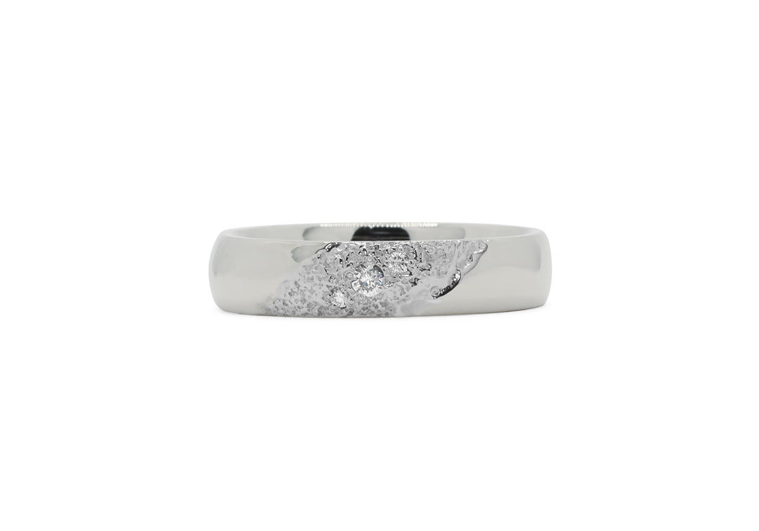 Jonc pour femme en argent sterling avec 3 diamants. Une partie polie et une partie texturée.