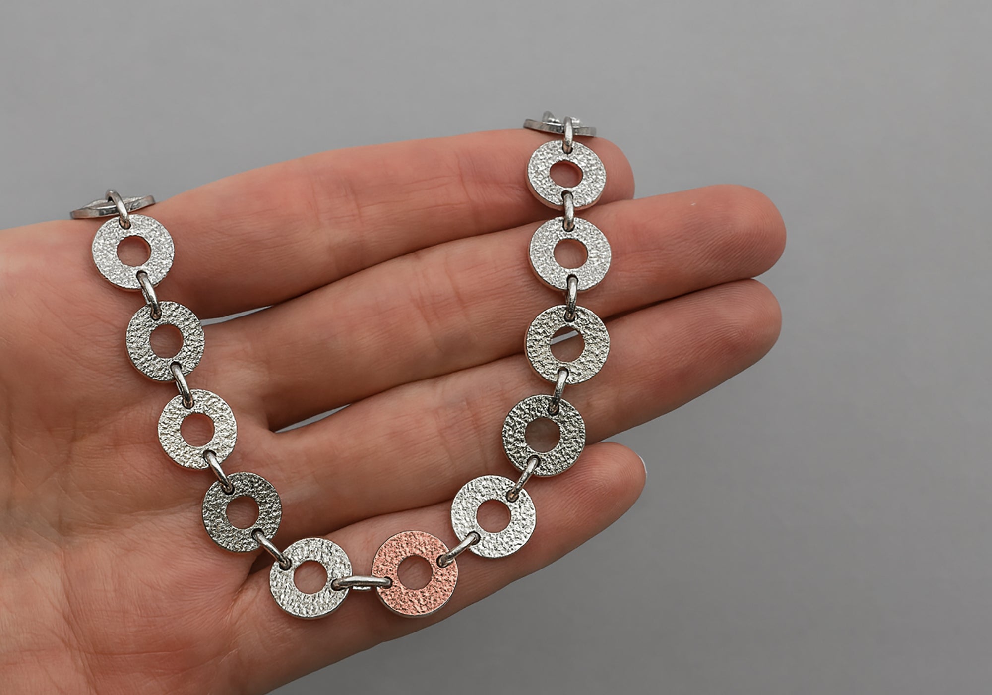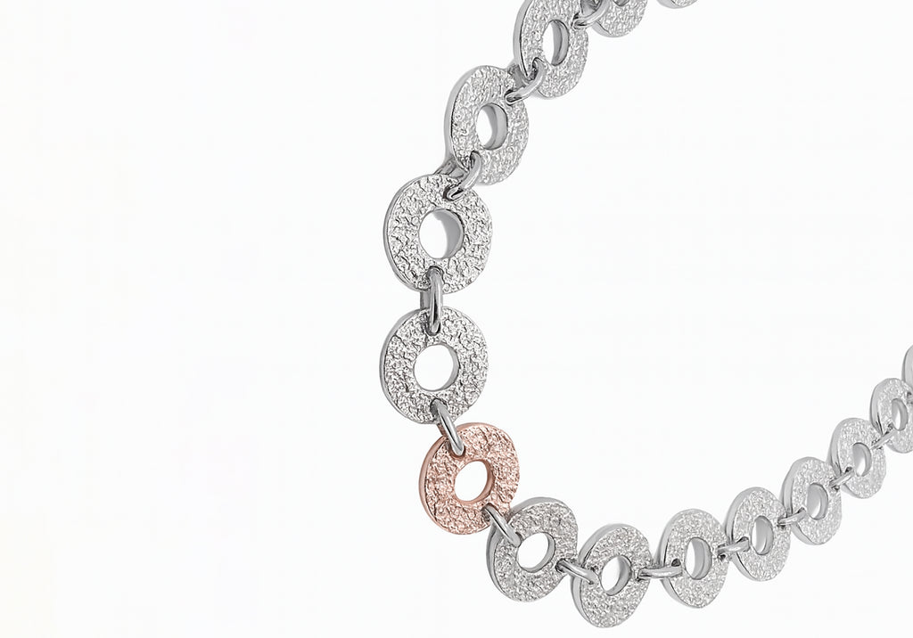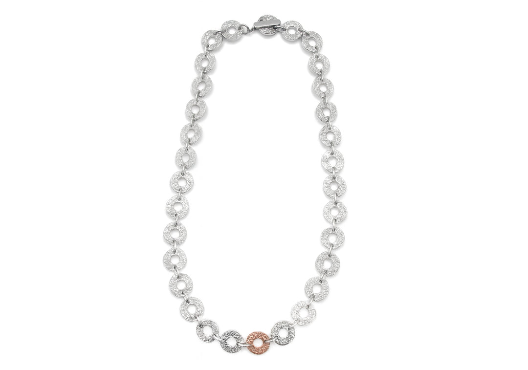 - Collier avec anneaux texturés en argent sterling et or rose 10K.