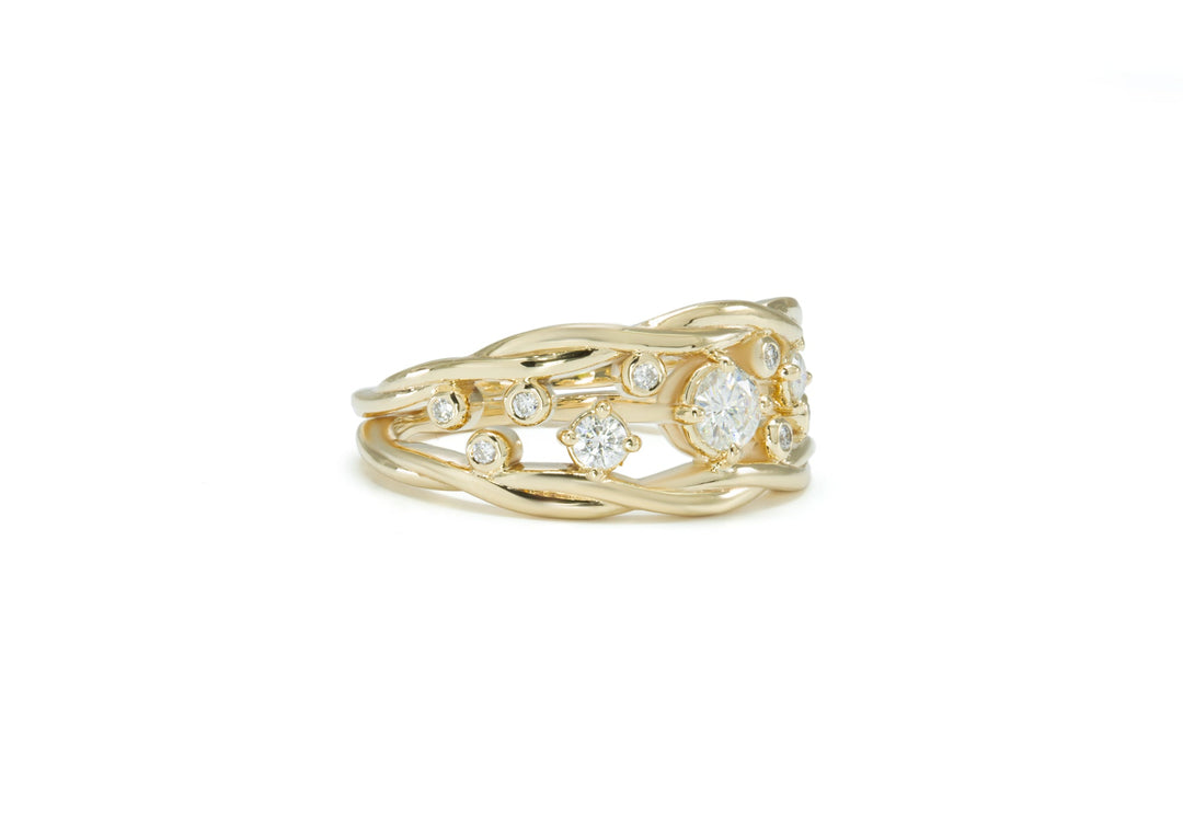 Bague en or tressée avec 11 diamants.