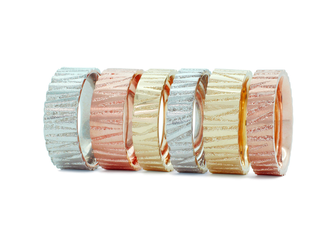 Jonc pour homme en or avec texture brute rappelant une écorce d'arbre.