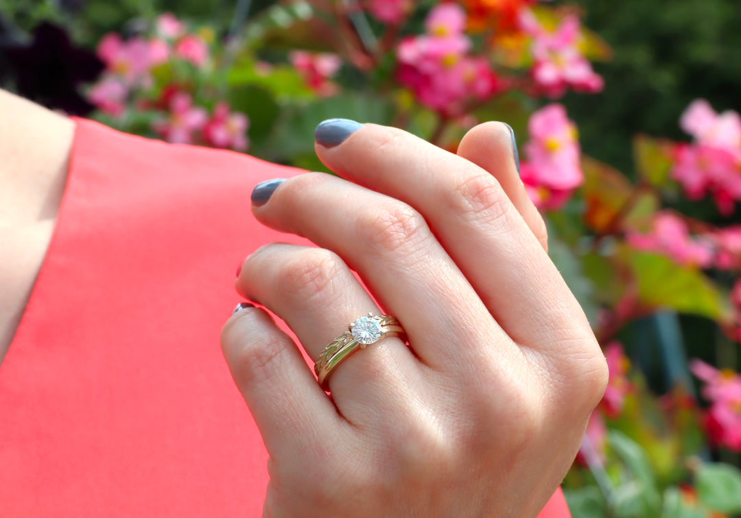 - Aussi disponible avec la moissanite Forever One de Charles & Colvard.
