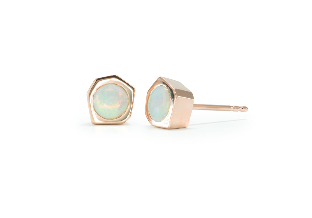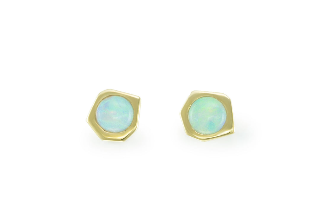 - Boucles d'oreilles en or de type bouton avec des opales.