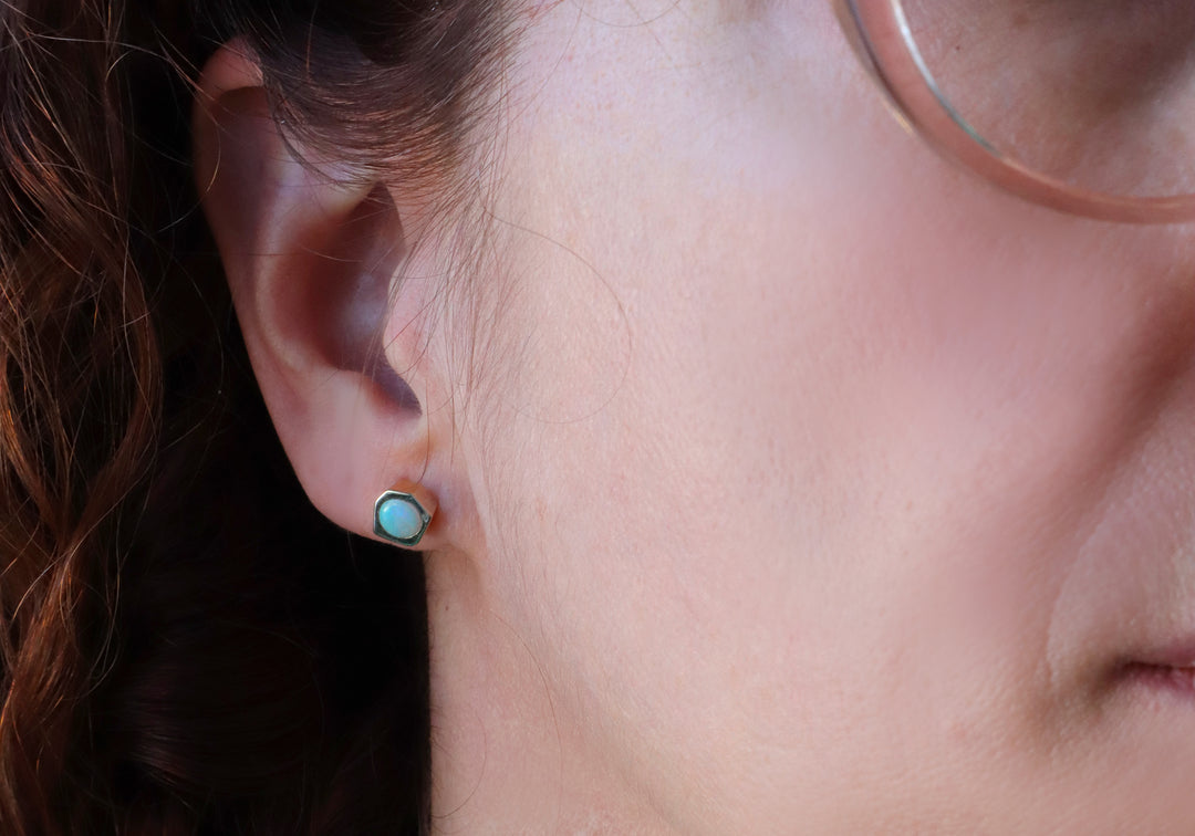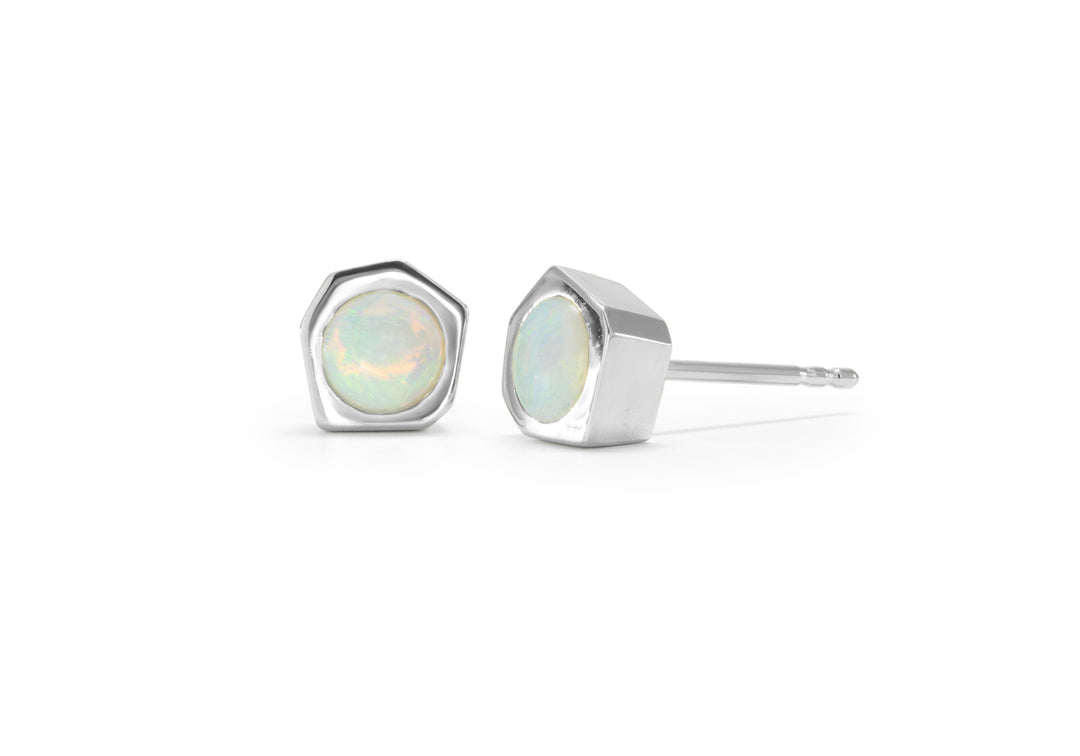 - Les opales sont serties dans un centre de forme hexagonale entièrement sculpté à la main.