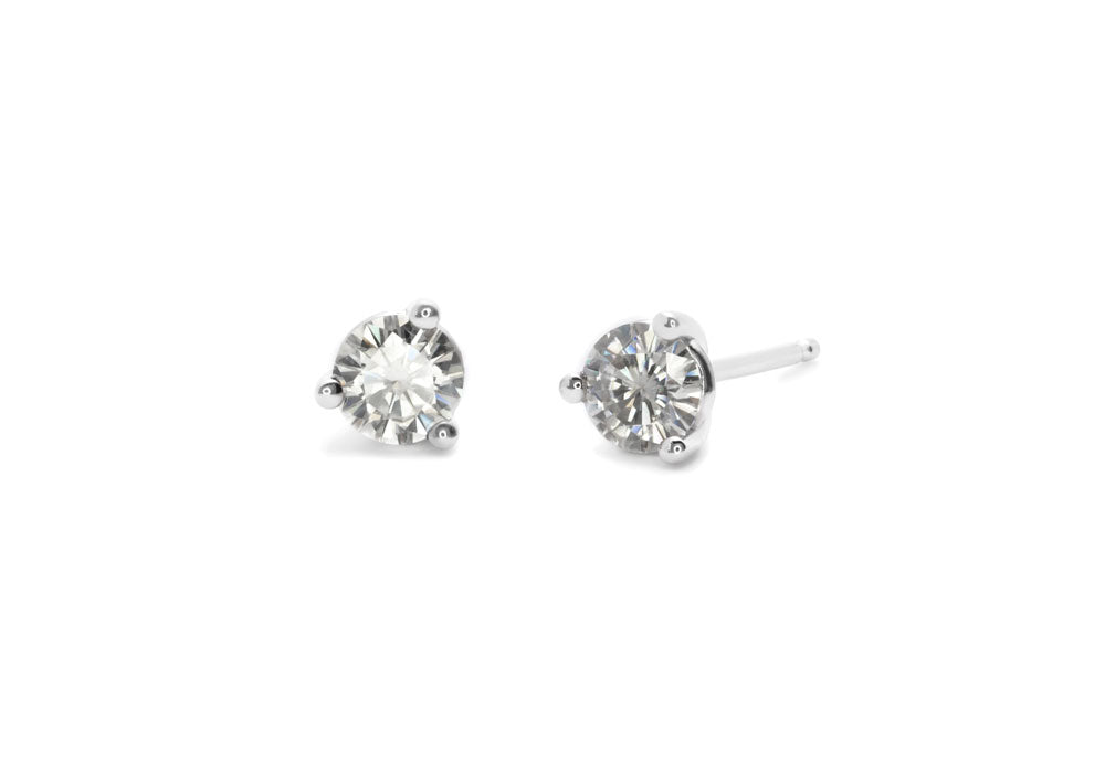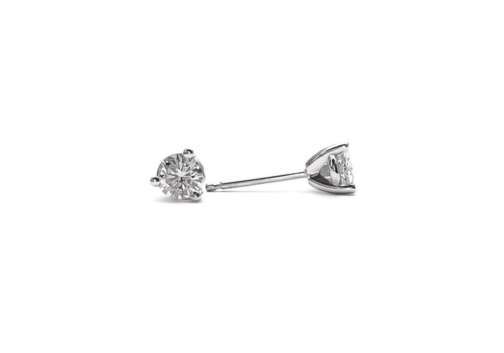 - Boucles d'oreilles à diamants avec griffes et tiges en or blanc.